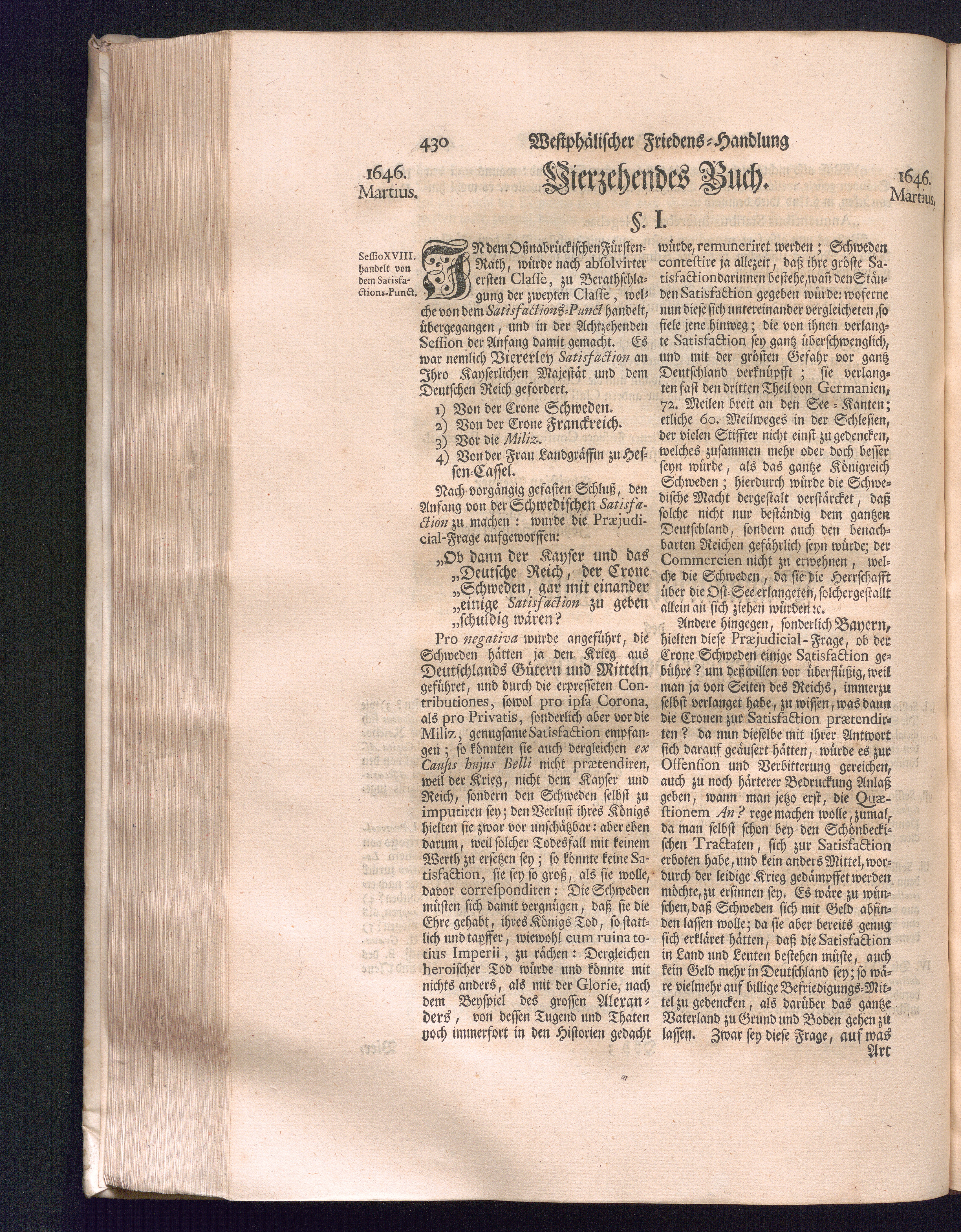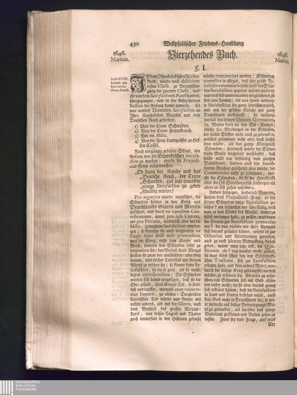 Zweyter Theil (1734) Worinnen enthalten, was vom Monath October Anno 1645. biß in den Monath Martium Ann. 1646. zwischen Jhro Römisch-Kayserlichen Majestät, dann den Beyden Cronen Franckreich und Schweden, ingleichen des Heiligen Römischen Reichs Chur-Fürsten, Fürsten und Ständen, zu Oßnabrück und Münster gehandelt worden