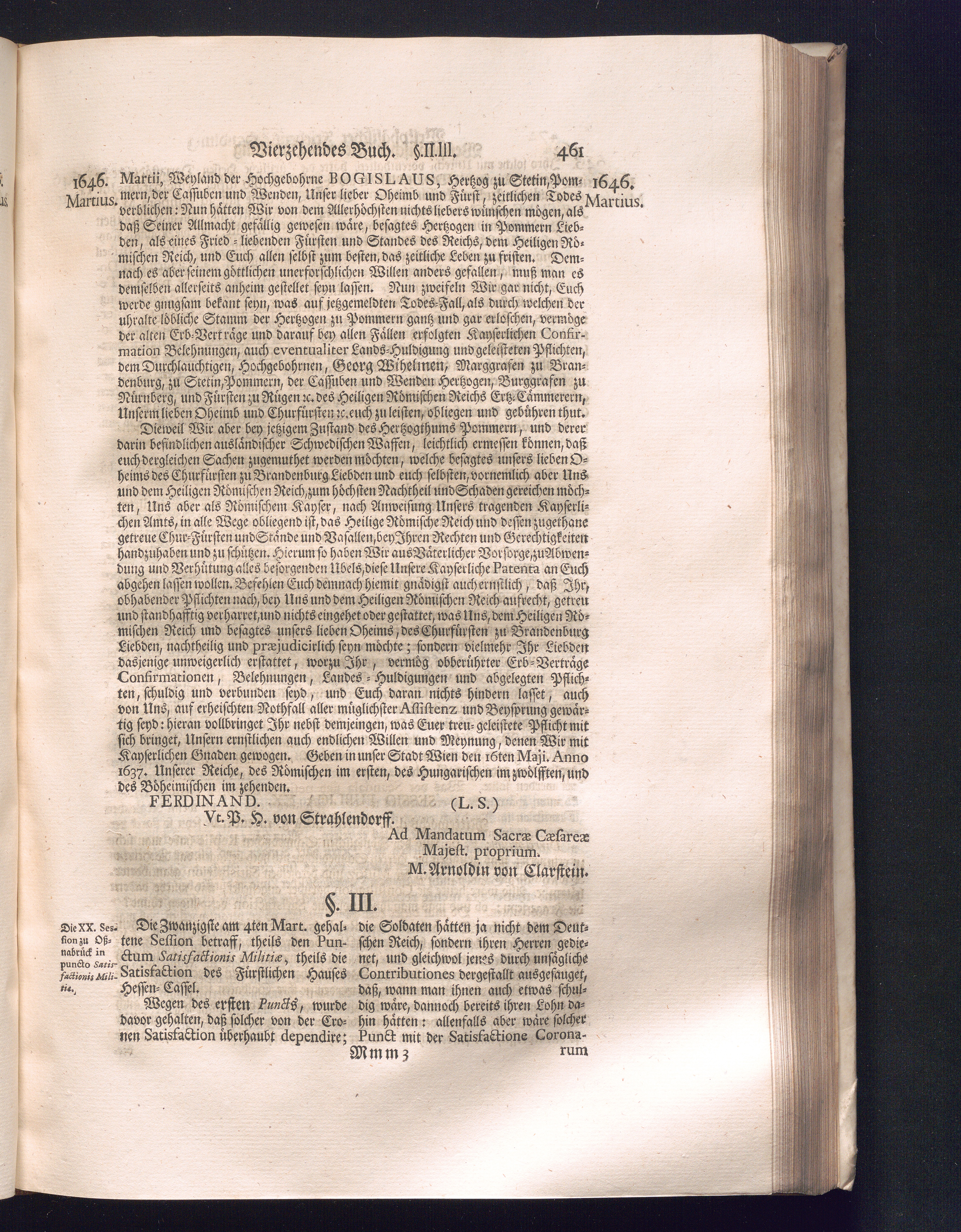 Zweyter Theil (1734) Worinnen enthalten, was vom Monath October Anno 1645. biß in den Monath Martium Ann. 1646. zwischen Jhro Römisch-Kayserlichen Majestät, dann den Beyden Cronen Franckreich und Schweden, ingleichen des Heiligen Römischen Reichs Chur-Fürsten, Fürsten und Ständen, zu Oßnabrück und Münster gehandelt worden