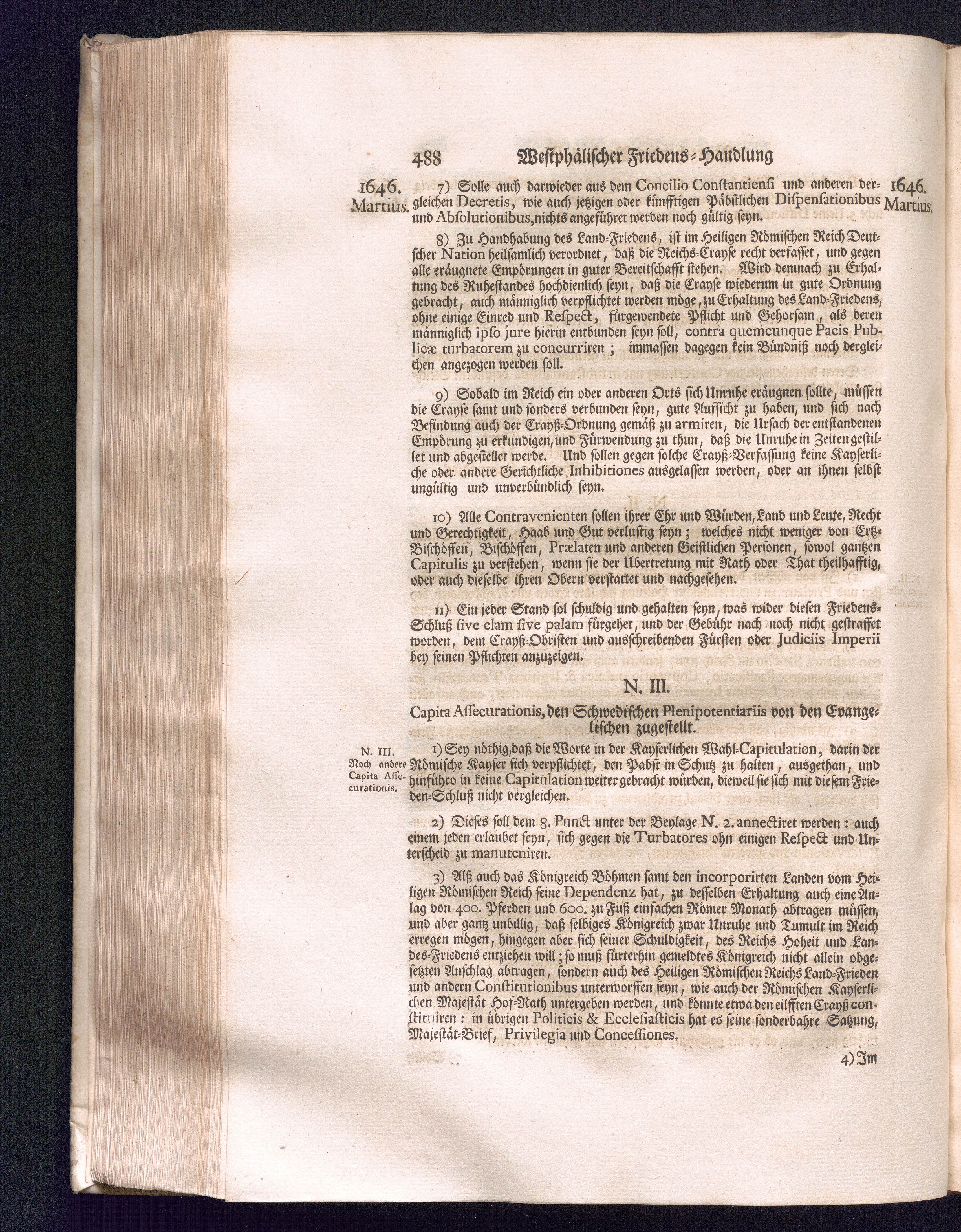 Zweyter Theil (1734) Worinnen enthalten, was vom Monath October Anno 1645. biß in den Monath Martium Ann. 1646. zwischen Jhro Römisch-Kayserlichen Majestät, dann den Beyden Cronen Franckreich und Schweden, ingleichen des Heiligen Römischen Reichs Chur-Fürsten, Fürsten und Ständen, zu Oßnabrück und Münster gehandelt worden