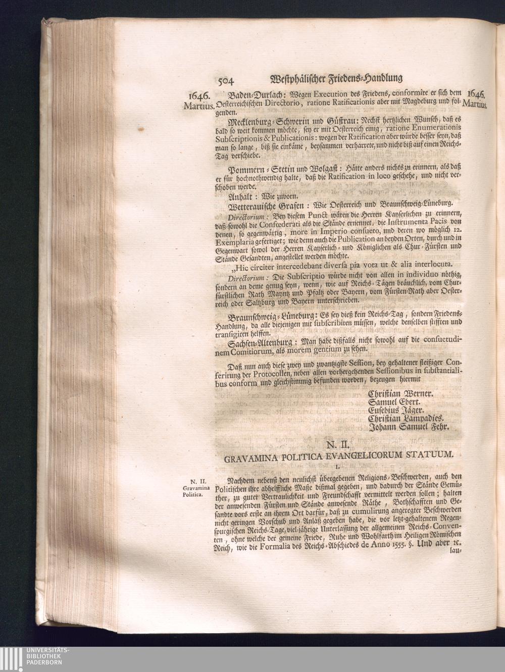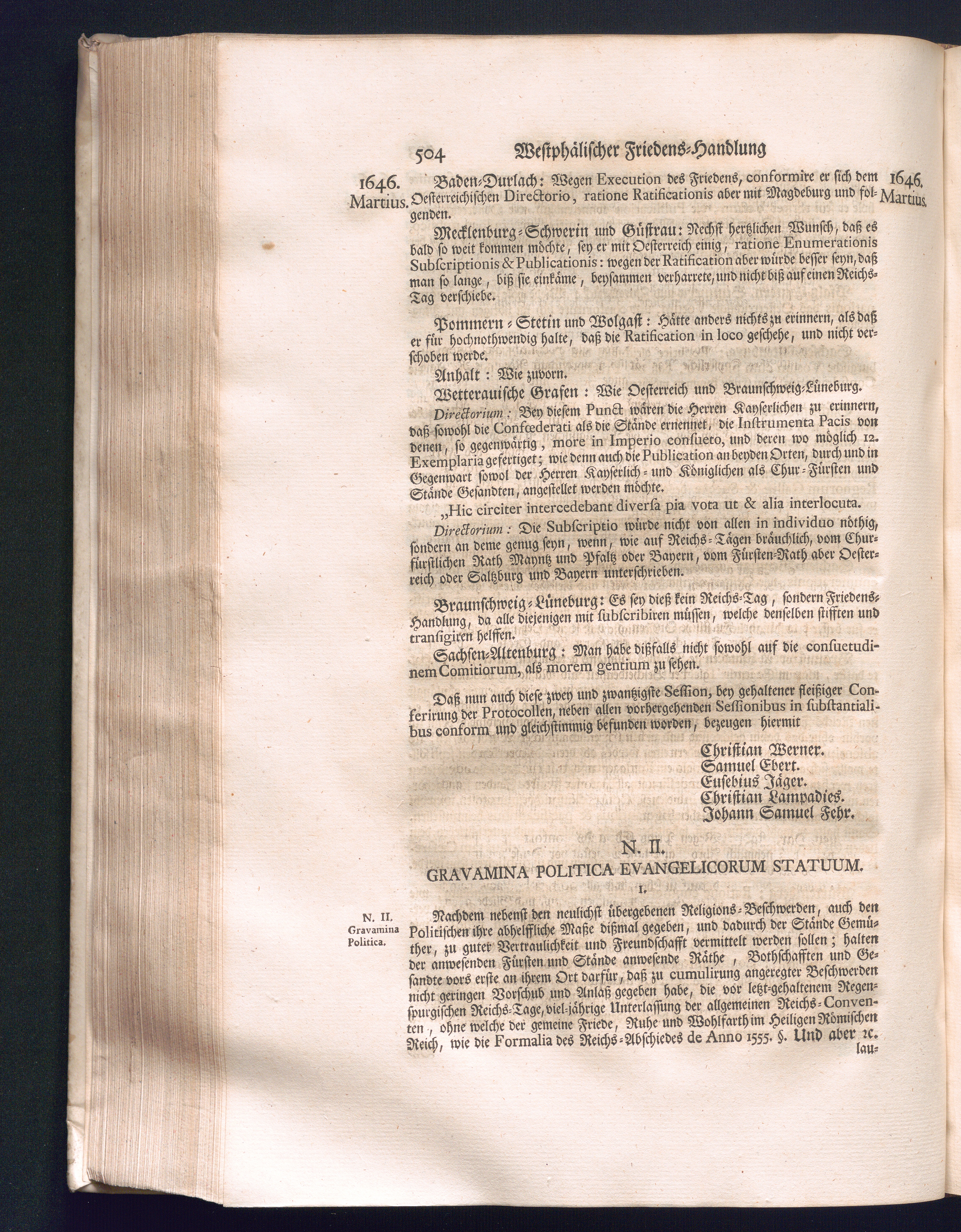 Zweyter Theil (1734) Worinnen enthalten, was vom Monath October Anno 1645. biß in den Monath Martium Ann. 1646. zwischen Jhro Römisch-Kayserlichen Majestät, dann den Beyden Cronen Franckreich und Schweden, ingleichen des Heiligen Römischen Reichs Chur-Fürsten, Fürsten und Ständen, zu Oßnabrück und Münster gehandelt worden