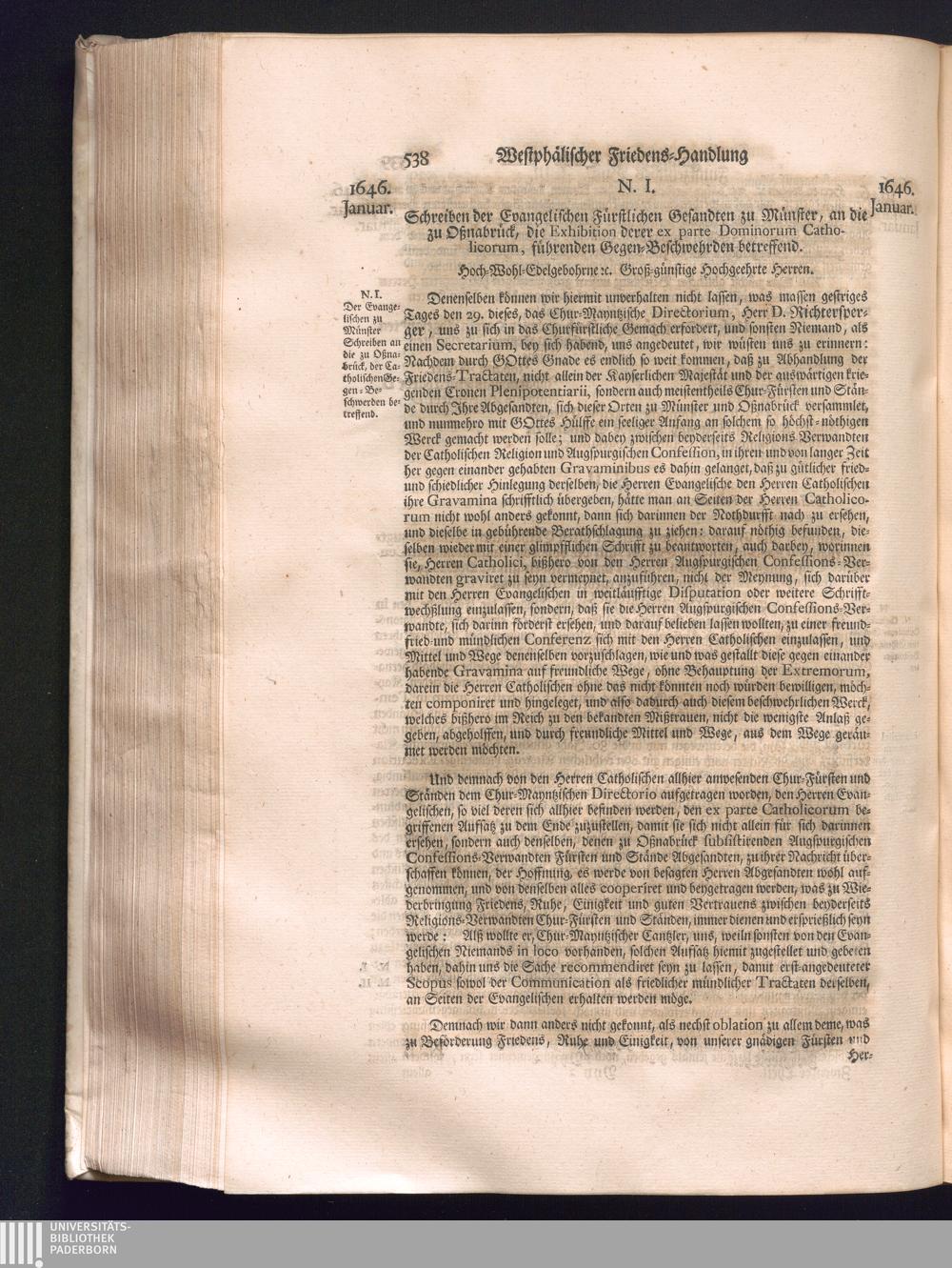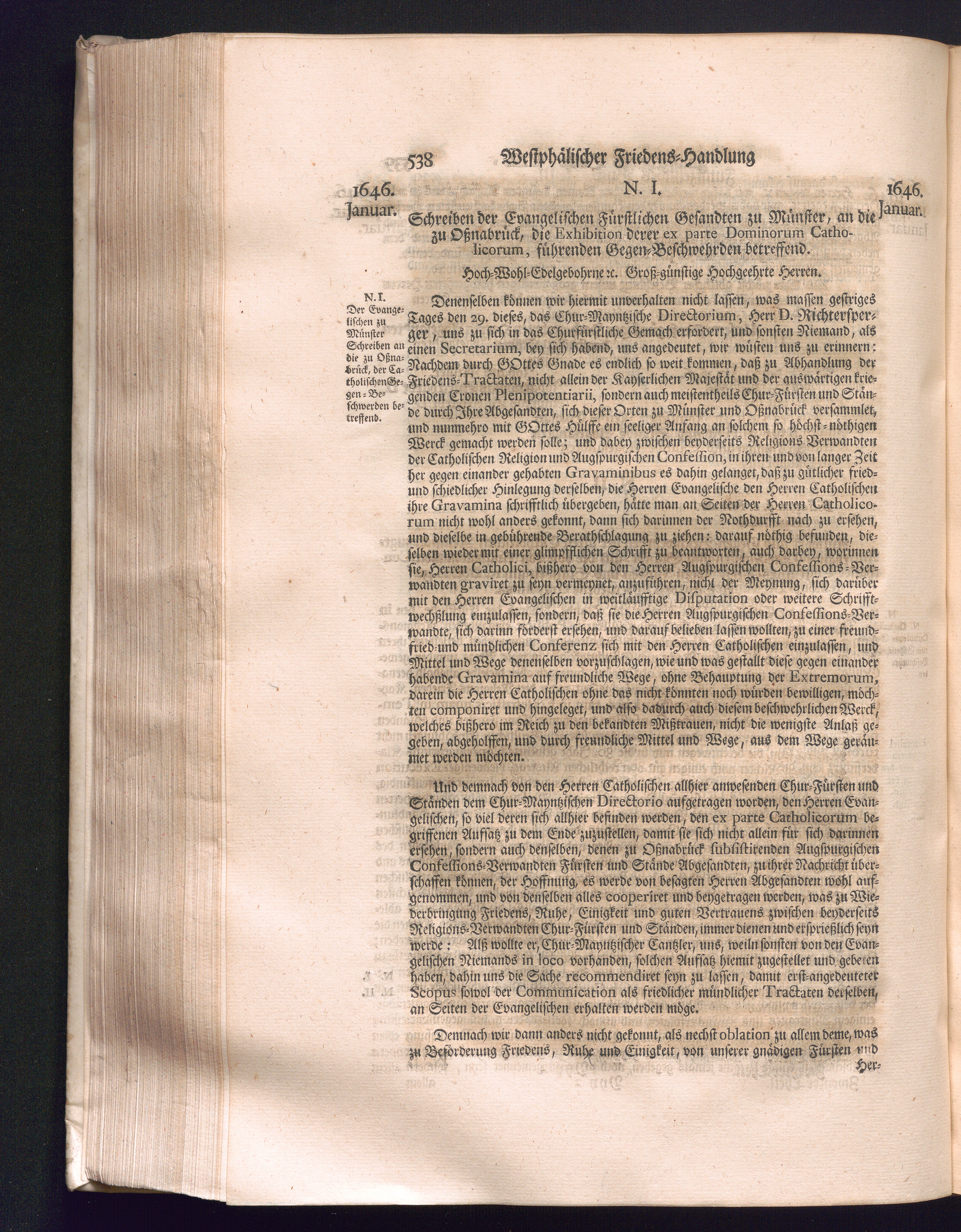 Zweyter Theil (1734) Worinnen enthalten, was vom Monath October Anno 1645. biß in den Monath Martium Ann. 1646. zwischen Jhro Römisch-Kayserlichen Majestät, dann den Beyden Cronen Franckreich und Schweden, ingleichen des Heiligen Römischen Reichs Chur-Fürsten, Fürsten und Ständen, zu Oßnabrück und Münster gehandelt worden