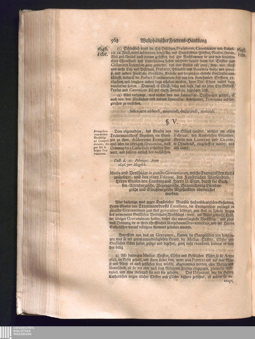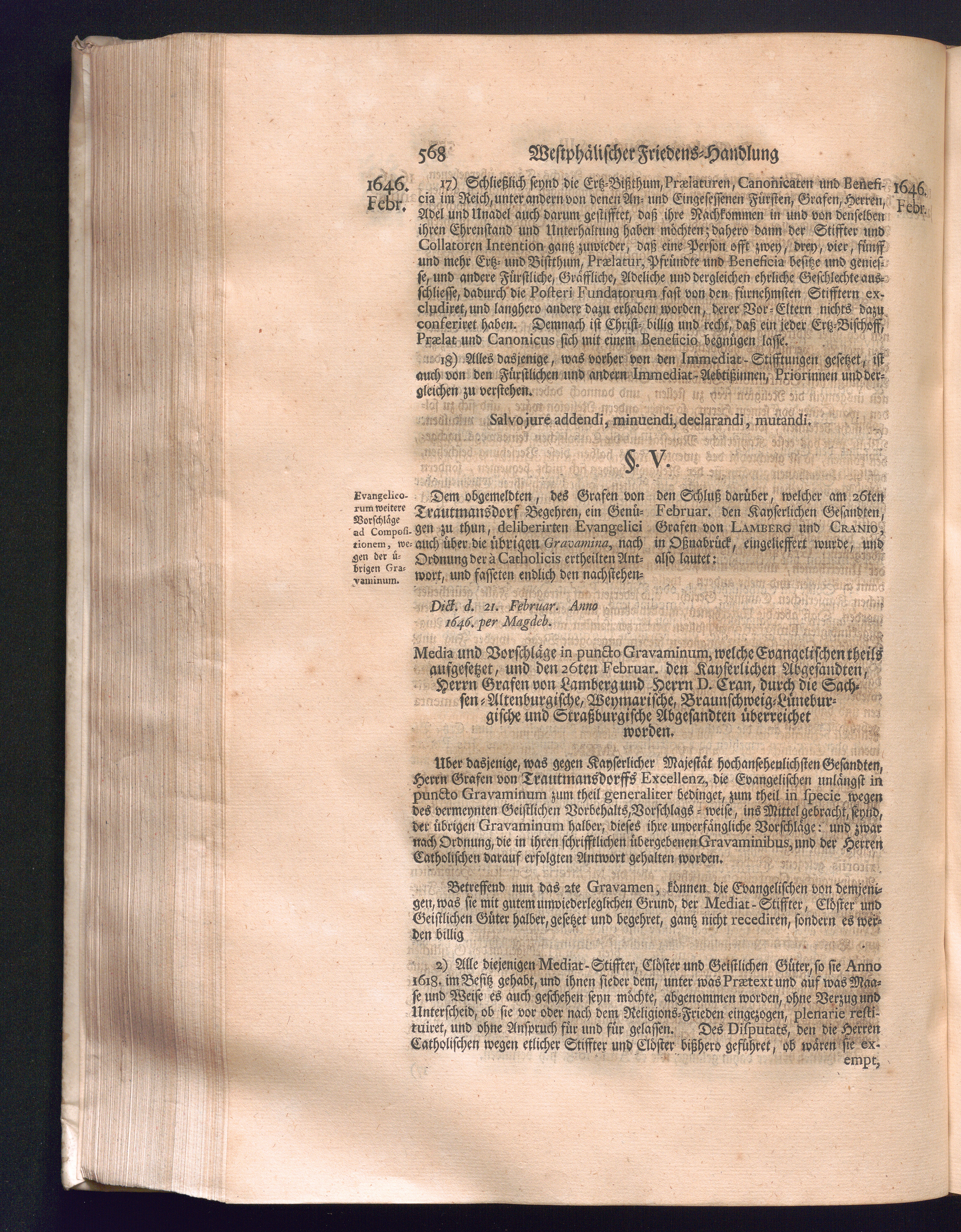 Zweyter Theil (1734) Worinnen enthalten, was vom Monath October Anno 1645. biß in den Monath Martium Ann. 1646. zwischen Jhro Römisch-Kayserlichen Majestät, dann den Beyden Cronen Franckreich und Schweden, ingleichen des Heiligen Römischen Reichs Chur-Fürsten, Fürsten und Ständen, zu Oßnabrück und Münster gehandelt worden