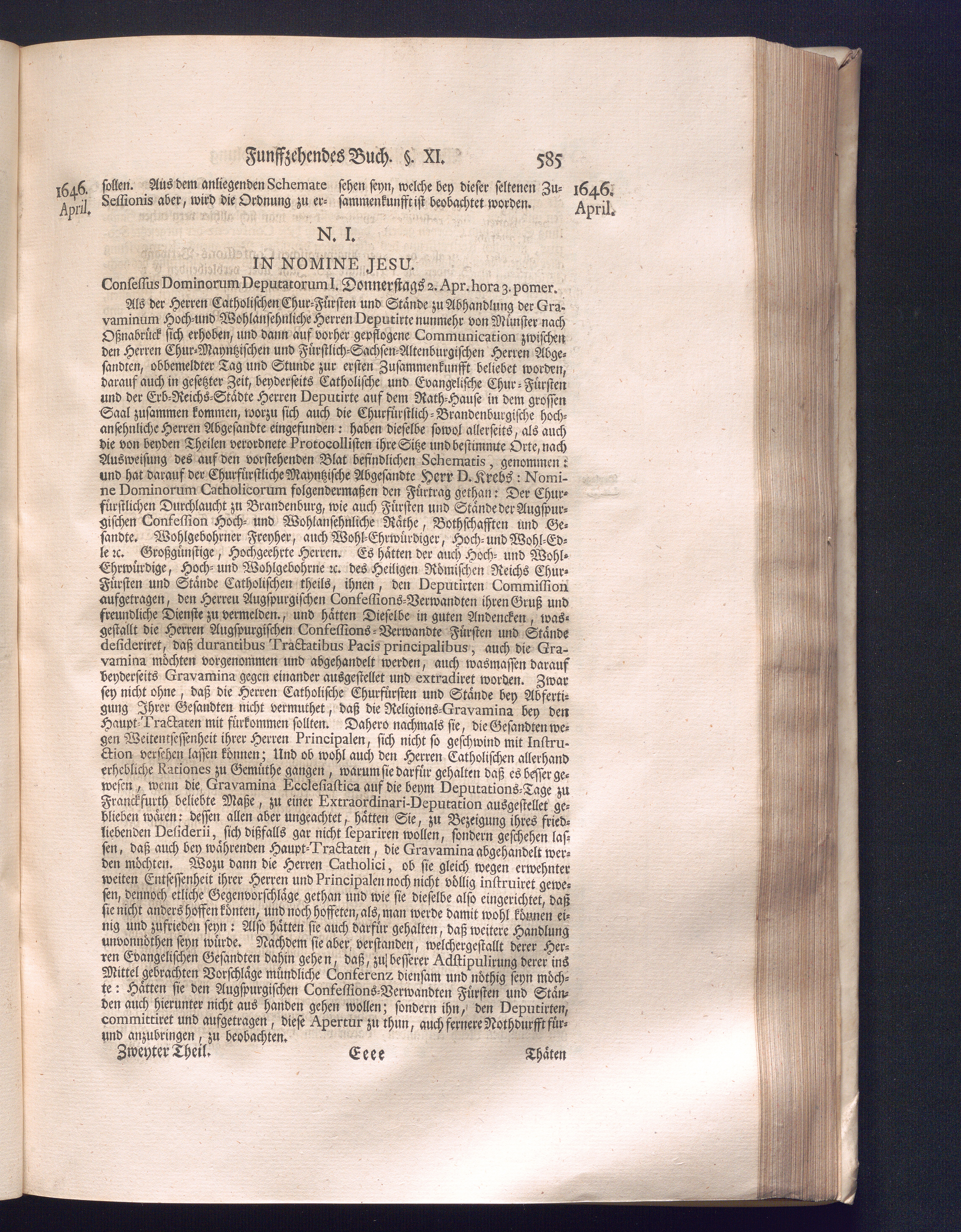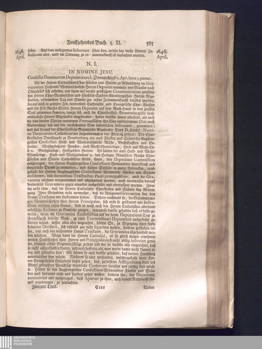 Zweyter Theil (1734) Worinnen enthalten, was vom Monath October Anno 1645. biß in den Monath Martium Ann. 1646. zwischen Jhro Römisch-Kayserlichen Majestät, dann den Beyden Cronen Franckreich und Schweden, ingleichen des Heiligen Römischen Reichs Chur-Fürsten, Fürsten und Ständen, zu Oßnabrück und Münster gehandelt worden