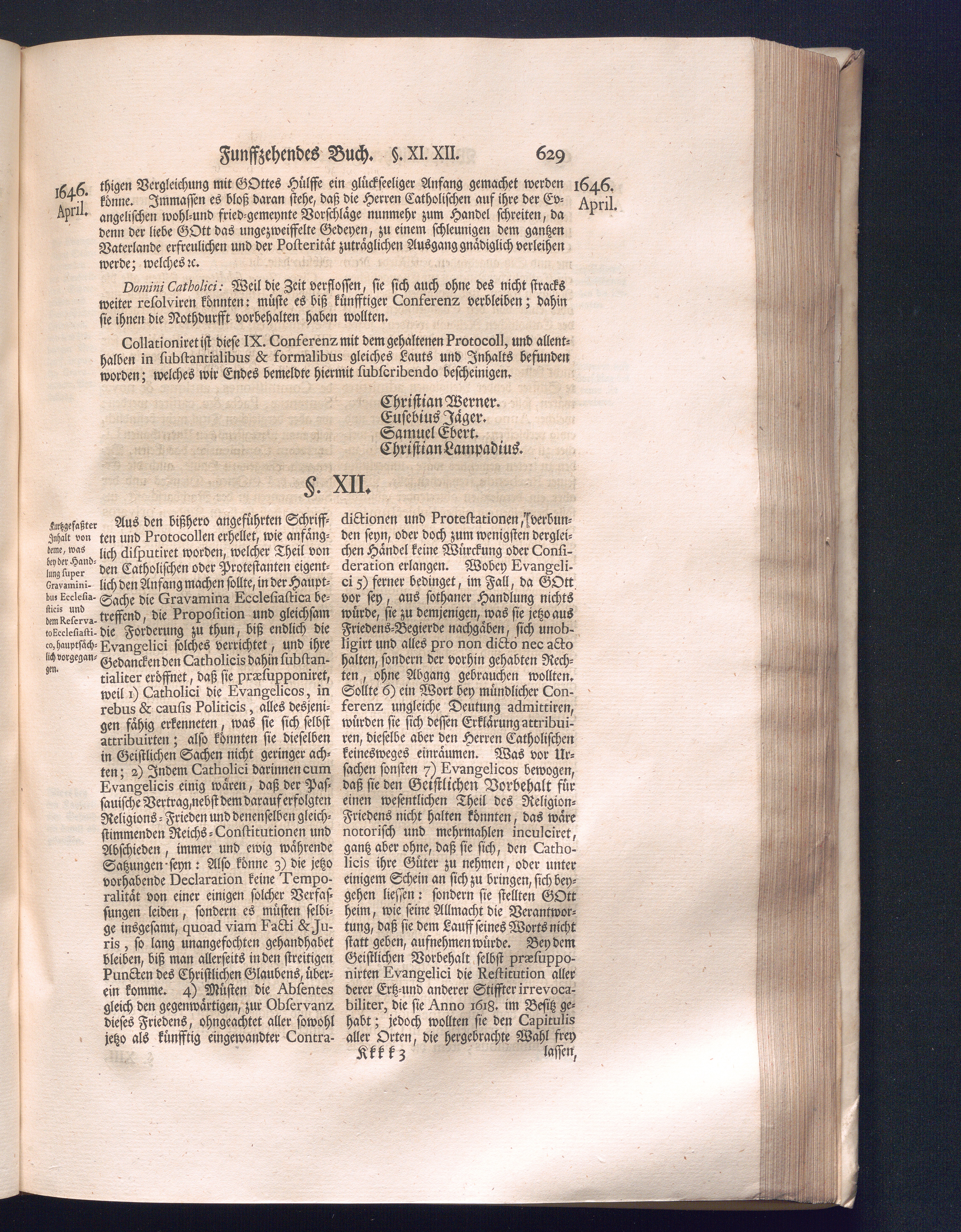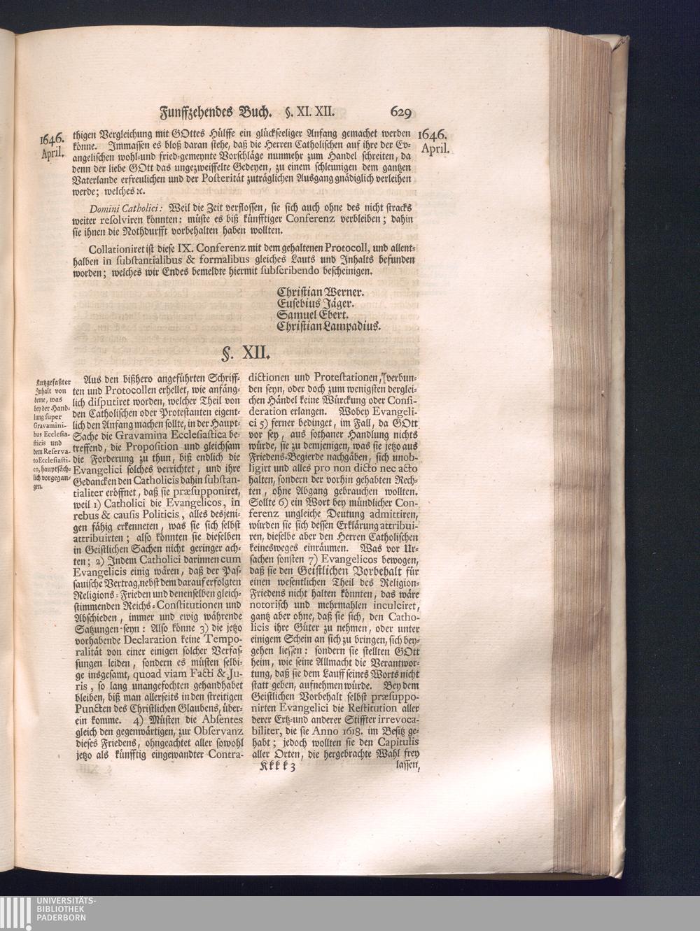 Zweyter Theil (1734) Worinnen enthalten, was vom Monath October Anno 1645. biß in den Monath Martium Ann. 1646. zwischen Jhro Römisch-Kayserlichen Majestät, dann den Beyden Cronen Franckreich und Schweden, ingleichen des Heiligen Römischen Reichs Chur-Fürsten, Fürsten und Ständen, zu Oßnabrück und Münster gehandelt worden