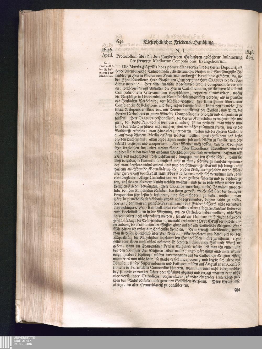 Zweyter Theil (1734) Worinnen enthalten, was vom Monath October Anno 1645. biß in den Monath Martium Ann. 1646. zwischen Jhro Römisch-Kayserlichen Majestät, dann den Beyden Cronen Franckreich und Schweden, ingleichen des Heiligen Römischen Reichs Chur-Fürsten, Fürsten und Ständen, zu Oßnabrück und Münster gehandelt worden
