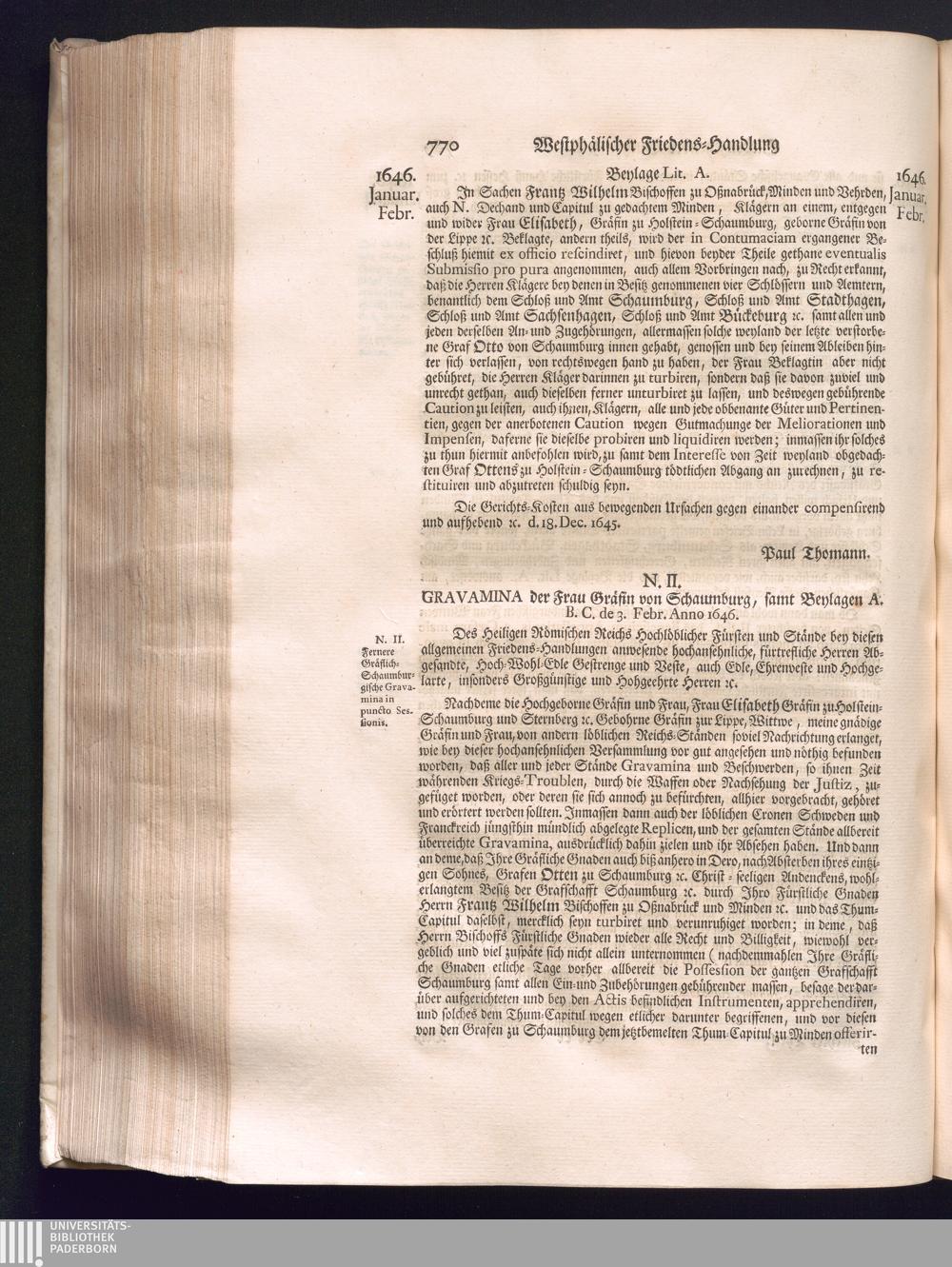 Zweyter Theil (1734) Worinnen enthalten, was vom Monath October Anno 1645. biß in den Monath Martium Ann. 1646. zwischen Jhro Römisch-Kayserlichen Majestät, dann den Beyden Cronen Franckreich und Schweden, ingleichen des Heiligen Römischen Reichs Chur-Fürsten, Fürsten und Ständen, zu Oßnabrück und Münster gehandelt worden