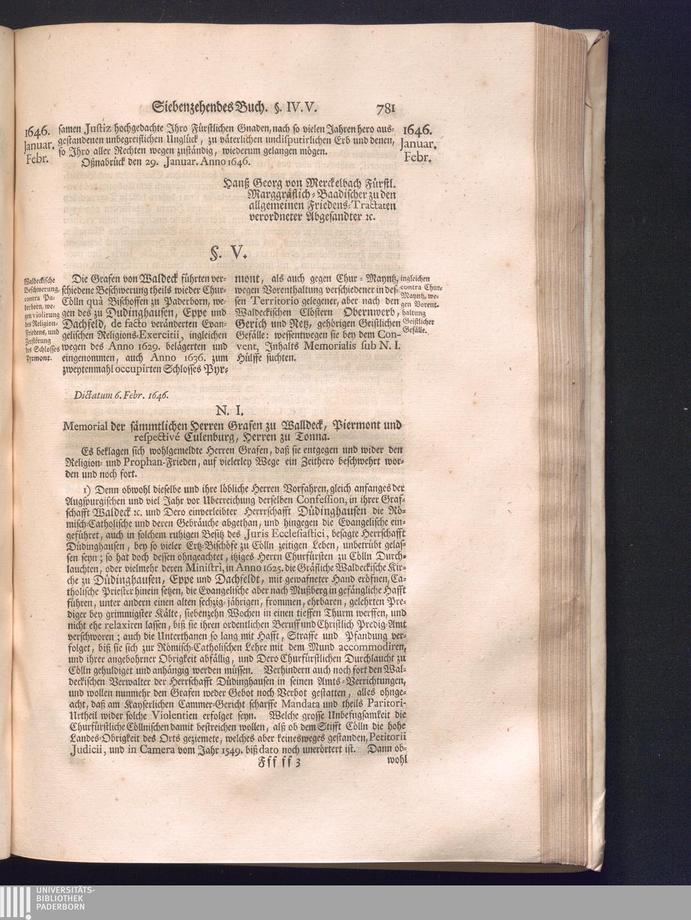 Zweyter Theil (1734) Worinnen enthalten, was vom Monath October Anno 1645. biß in den Monath Martium Ann. 1646. zwischen Jhro Römisch-Kayserlichen Majestät, dann den Beyden Cronen Franckreich und Schweden, ingleichen des Heiligen Römischen Reichs Chur-Fürsten, Fürsten und Ständen, zu Oßnabrück und Münster gehandelt worden
