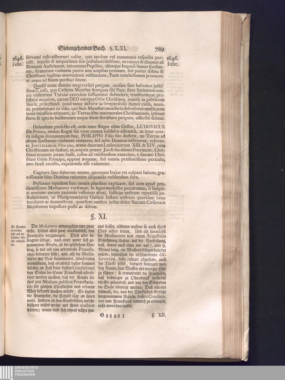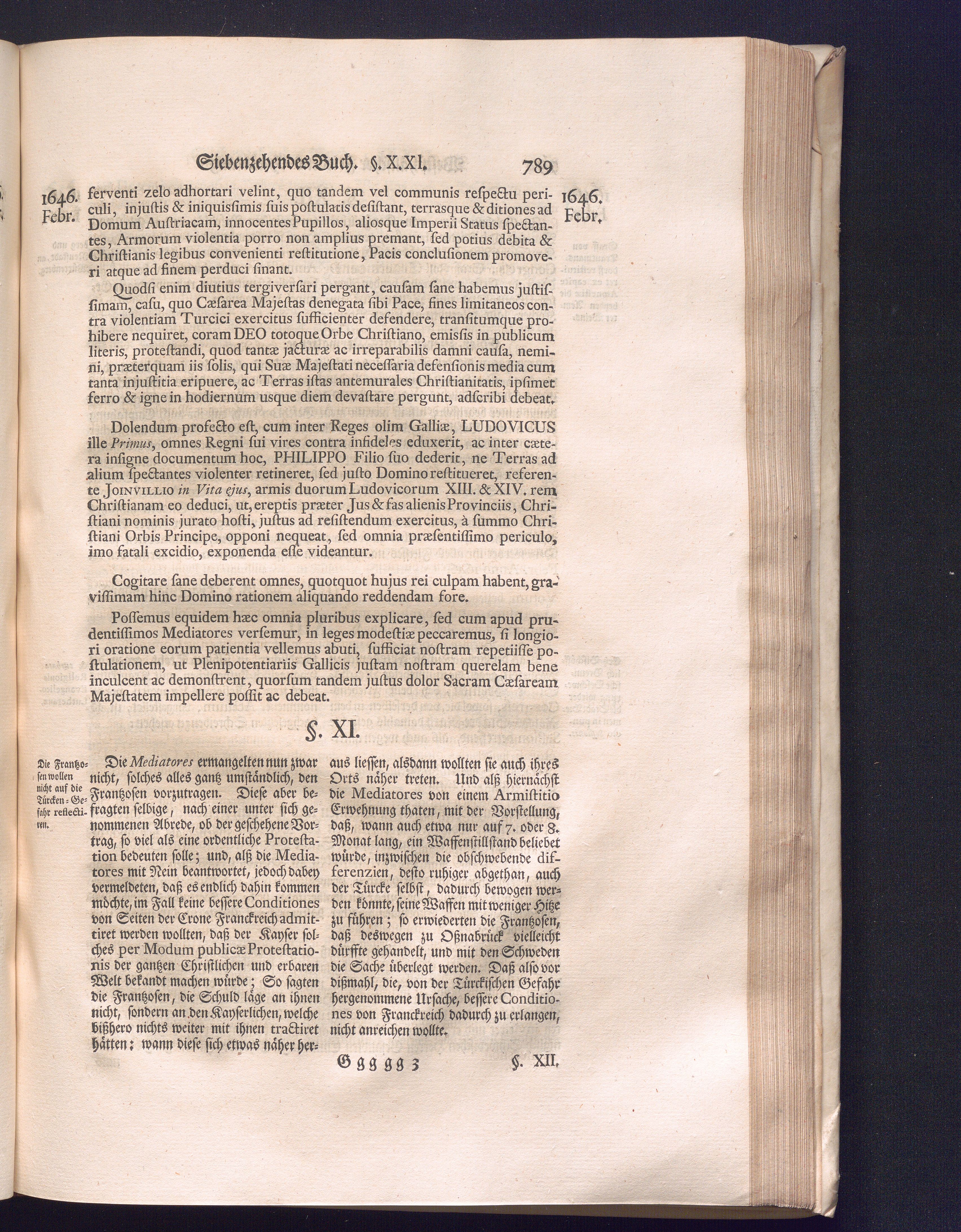 Zweyter Theil (1734) Worinnen enthalten, was vom Monath October Anno 1645. biß in den Monath Martium Ann. 1646. zwischen Jhro Römisch-Kayserlichen Majestät, dann den Beyden Cronen Franckreich und Schweden, ingleichen des Heiligen Römischen Reichs Chur-Fürsten, Fürsten und Ständen, zu Oßnabrück und Münster gehandelt worden