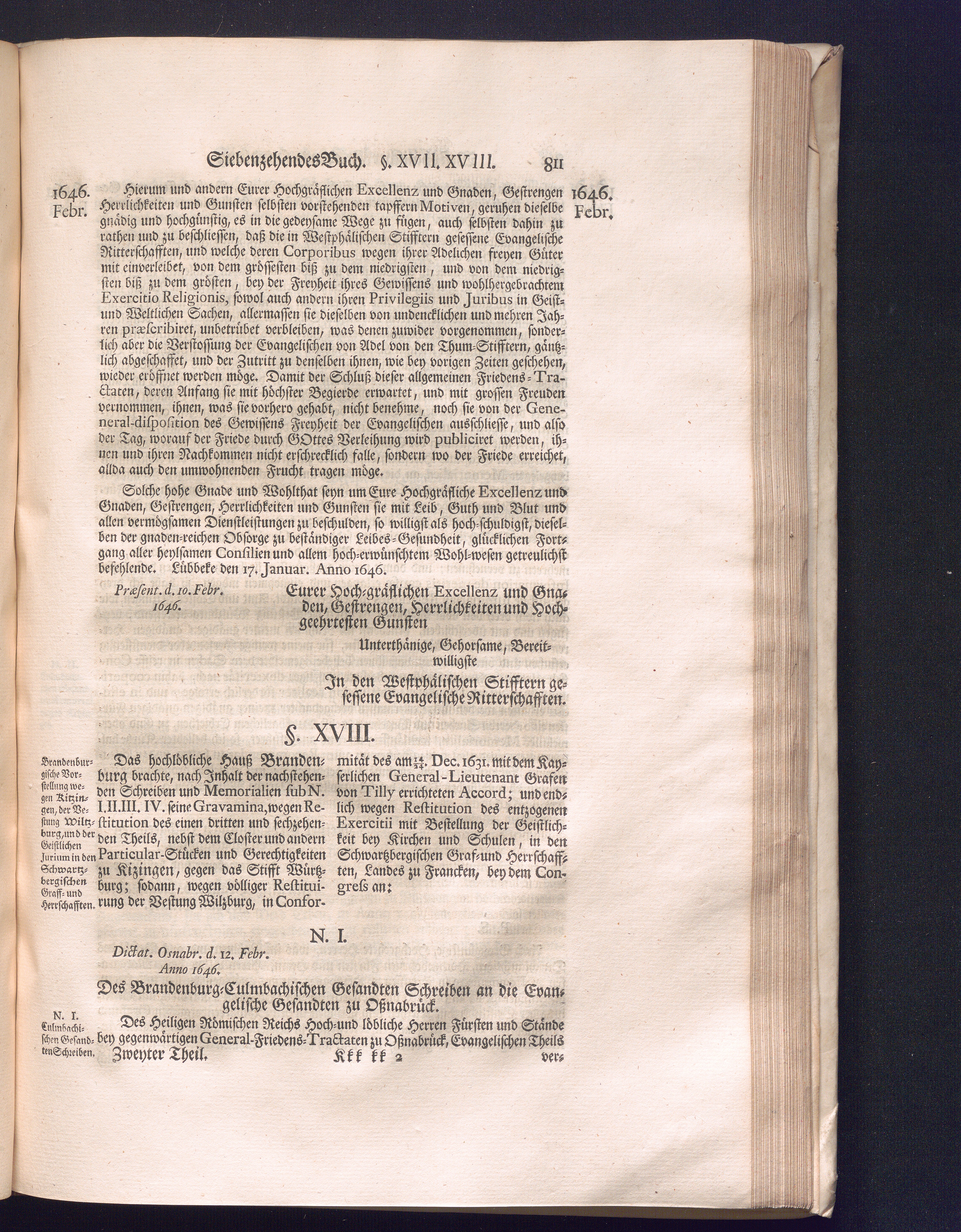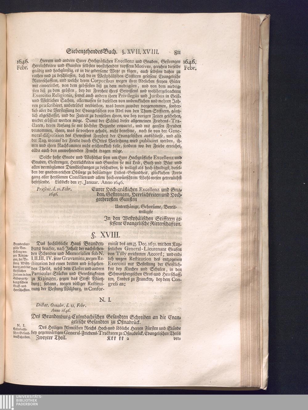 Zweyter Theil (1734) Worinnen enthalten, was vom Monath October Anno 1645. biß in den Monath Martium Ann. 1646. zwischen Jhro Römisch-Kayserlichen Majestät, dann den Beyden Cronen Franckreich und Schweden, ingleichen des Heiligen Römischen Reichs Chur-Fürsten, Fürsten und Ständen, zu Oßnabrück und Münster gehandelt worden