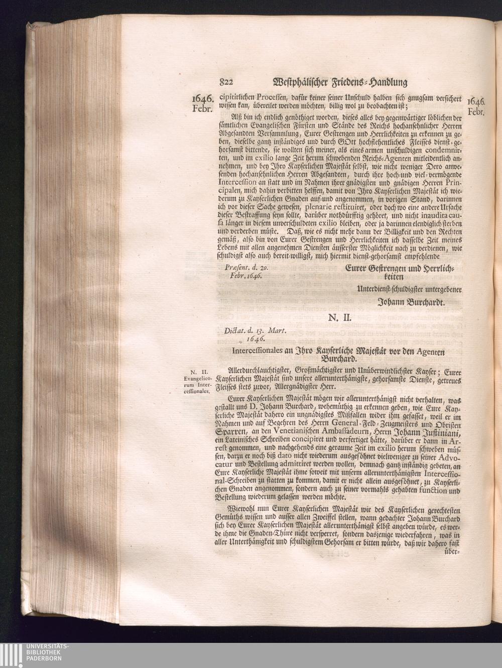Zweyter Theil (1734) Worinnen enthalten, was vom Monath October Anno 1645. biß in den Monath Martium Ann. 1646. zwischen Jhro Römisch-Kayserlichen Majestät, dann den Beyden Cronen Franckreich und Schweden, ingleichen des Heiligen Römischen Reichs Chur-Fürsten, Fürsten und Ständen, zu Oßnabrück und Münster gehandelt worden