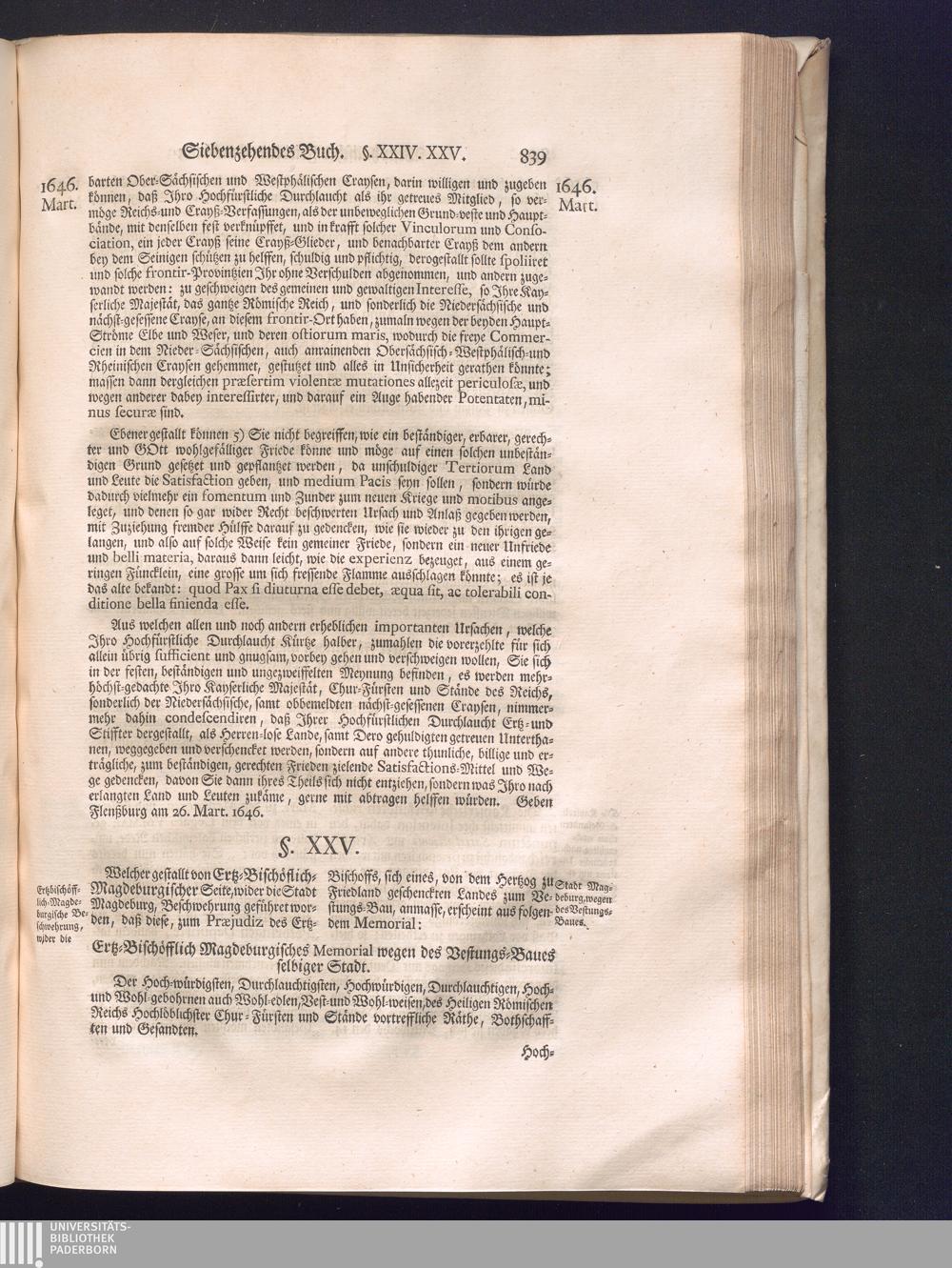 Zweyter Theil (1734) Worinnen enthalten, was vom Monath October Anno 1645. biß in den Monath Martium Ann. 1646. zwischen Jhro Römisch-Kayserlichen Majestät, dann den Beyden Cronen Franckreich und Schweden, ingleichen des Heiligen Römischen Reichs Chur-Fürsten, Fürsten und Ständen, zu Oßnabrück und Münster gehandelt worden