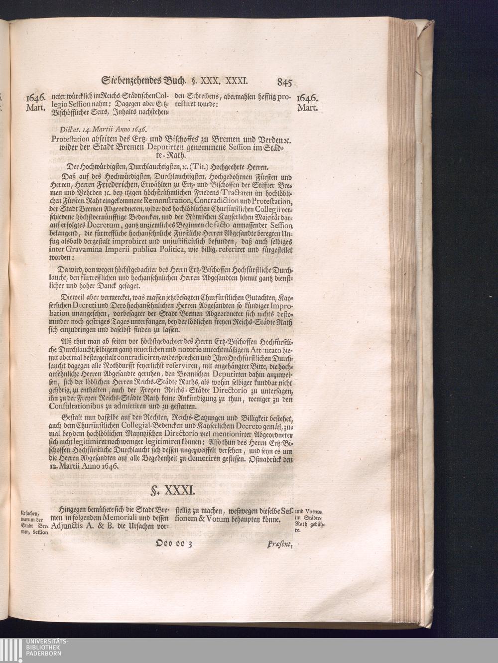 Zweyter Theil (1734) Worinnen enthalten, was vom Monath October Anno 1645. biß in den Monath Martium Ann. 1646. zwischen Jhro Römisch-Kayserlichen Majestät, dann den Beyden Cronen Franckreich und Schweden, ingleichen des Heiligen Römischen Reichs Chur-Fürsten, Fürsten und Ständen, zu Oßnabrück und Münster gehandelt worden