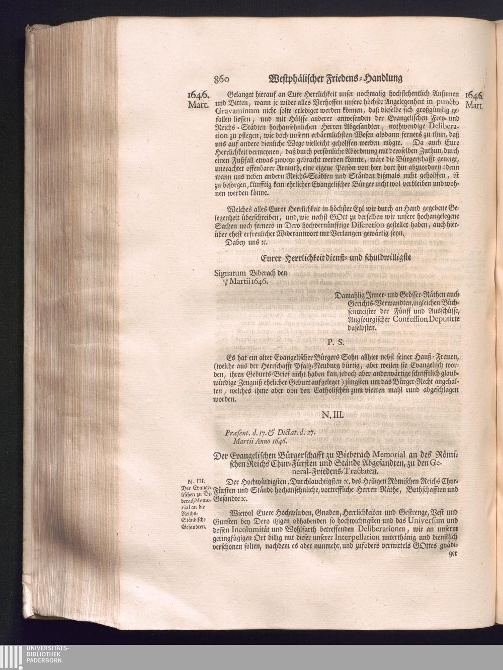 Zweyter Theil (1734) Worinnen enthalten, was vom Monath October Anno 1645. biß in den Monath Martium Ann. 1646. zwischen Jhro Römisch-Kayserlichen Majestät, dann den Beyden Cronen Franckreich und Schweden, ingleichen des Heiligen Römischen Reichs Chur-Fürsten, Fürsten und Ständen, zu Oßnabrück und Münster gehandelt worden