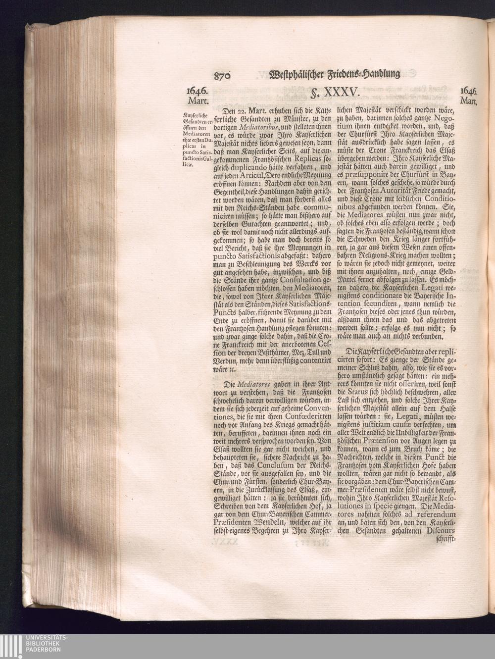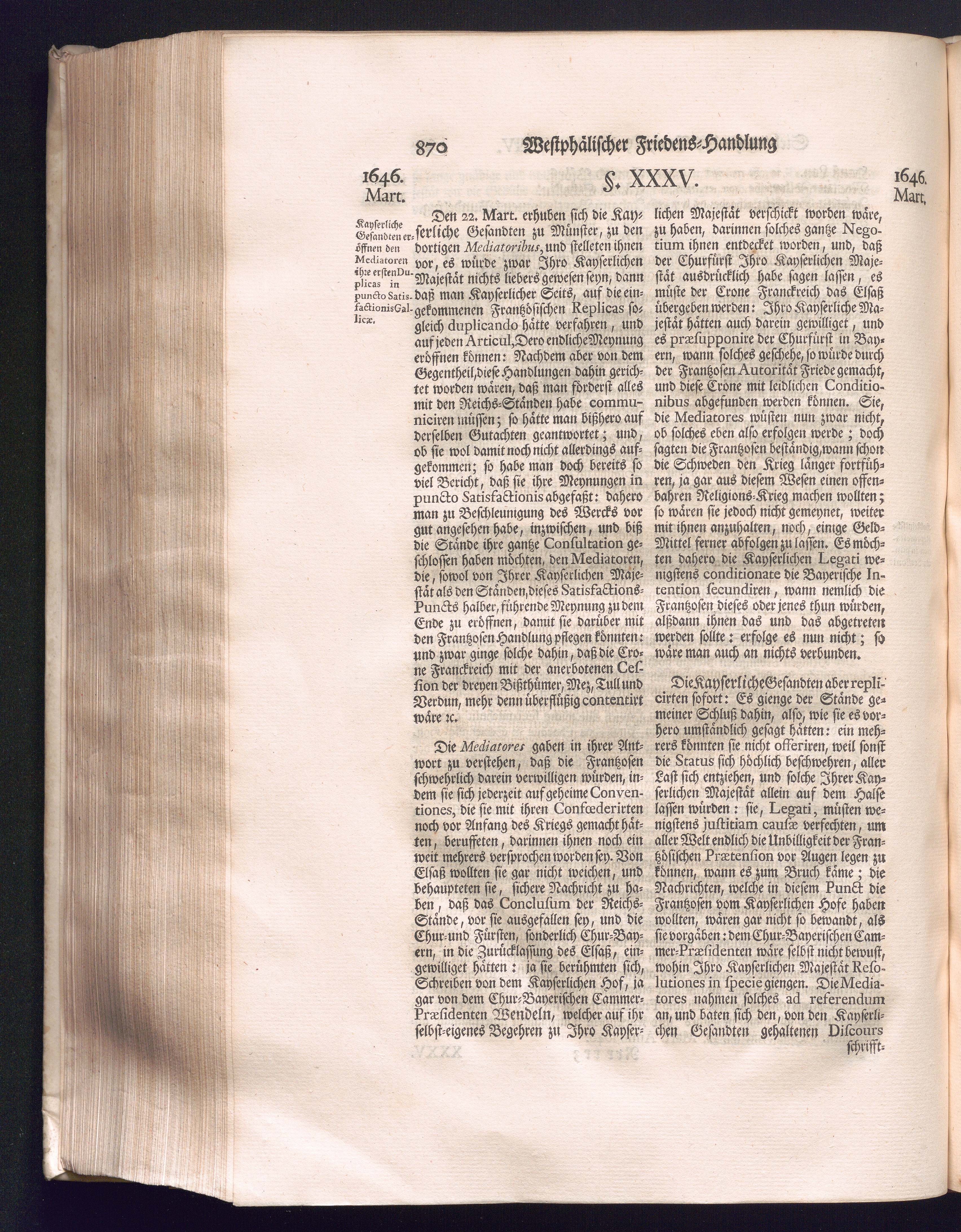 Zweyter Theil (1734) Worinnen enthalten, was vom Monath October Anno 1645. biß in den Monath Martium Ann. 1646. zwischen Jhro Römisch-Kayserlichen Majestät, dann den Beyden Cronen Franckreich und Schweden, ingleichen des Heiligen Römischen Reichs Chur-Fürsten, Fürsten und Ständen, zu Oßnabrück und Münster gehandelt worden
