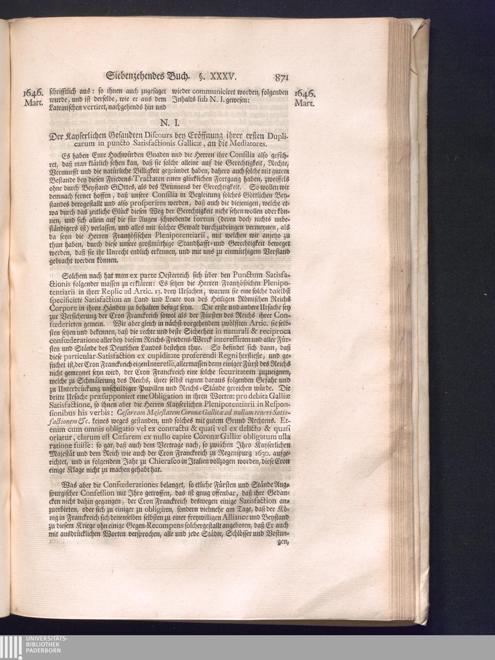 Zweyter Theil (1734) Worinnen enthalten, was vom Monath October Anno 1645. biß in den Monath Martium Ann. 1646. zwischen Jhro Römisch-Kayserlichen Majestät, dann den Beyden Cronen Franckreich und Schweden, ingleichen des Heiligen Römischen Reichs Chur-Fürsten, Fürsten und Ständen, zu Oßnabrück und Münster gehandelt worden