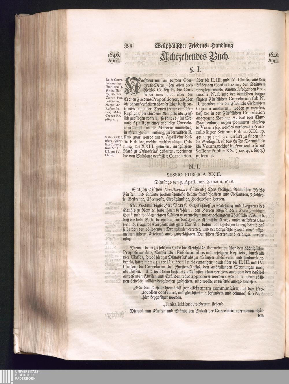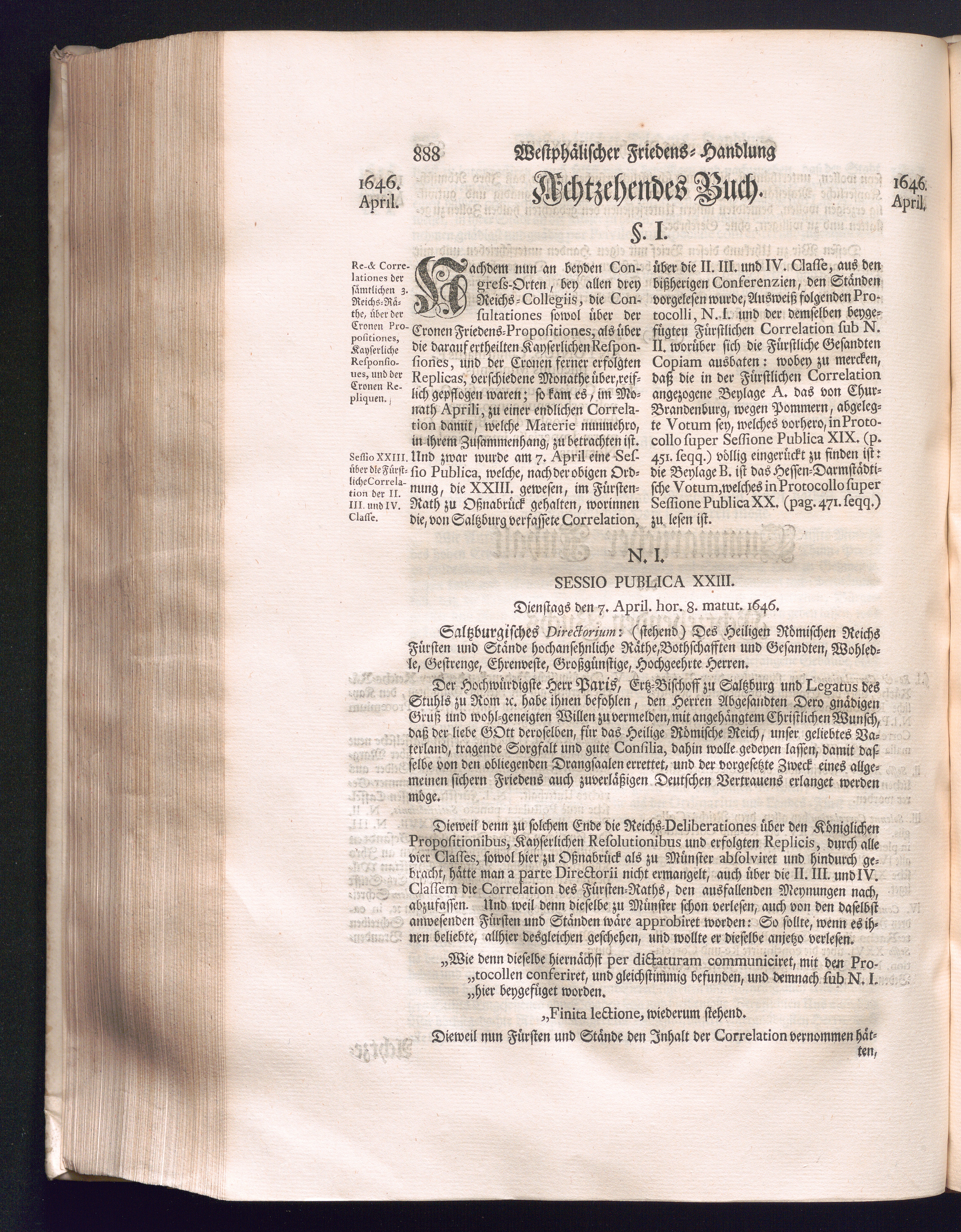 Zweyter Theil (1734) Worinnen enthalten, was vom Monath October Anno 1645. biß in den Monath Martium Ann. 1646. zwischen Jhro Römisch-Kayserlichen Majestät, dann den Beyden Cronen Franckreich und Schweden, ingleichen des Heiligen Römischen Reichs Chur-Fürsten, Fürsten und Ständen, zu Oßnabrück und Münster gehandelt worden