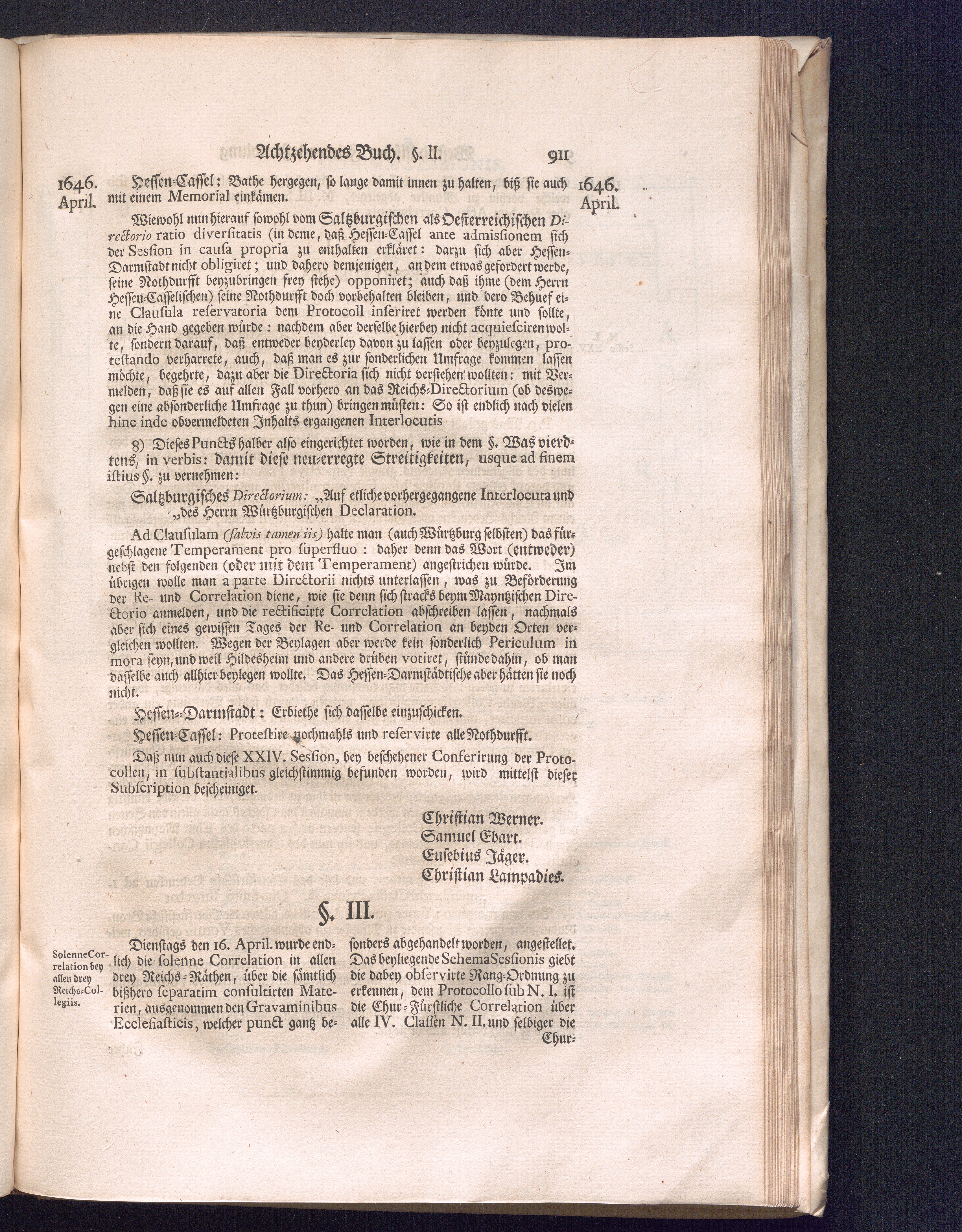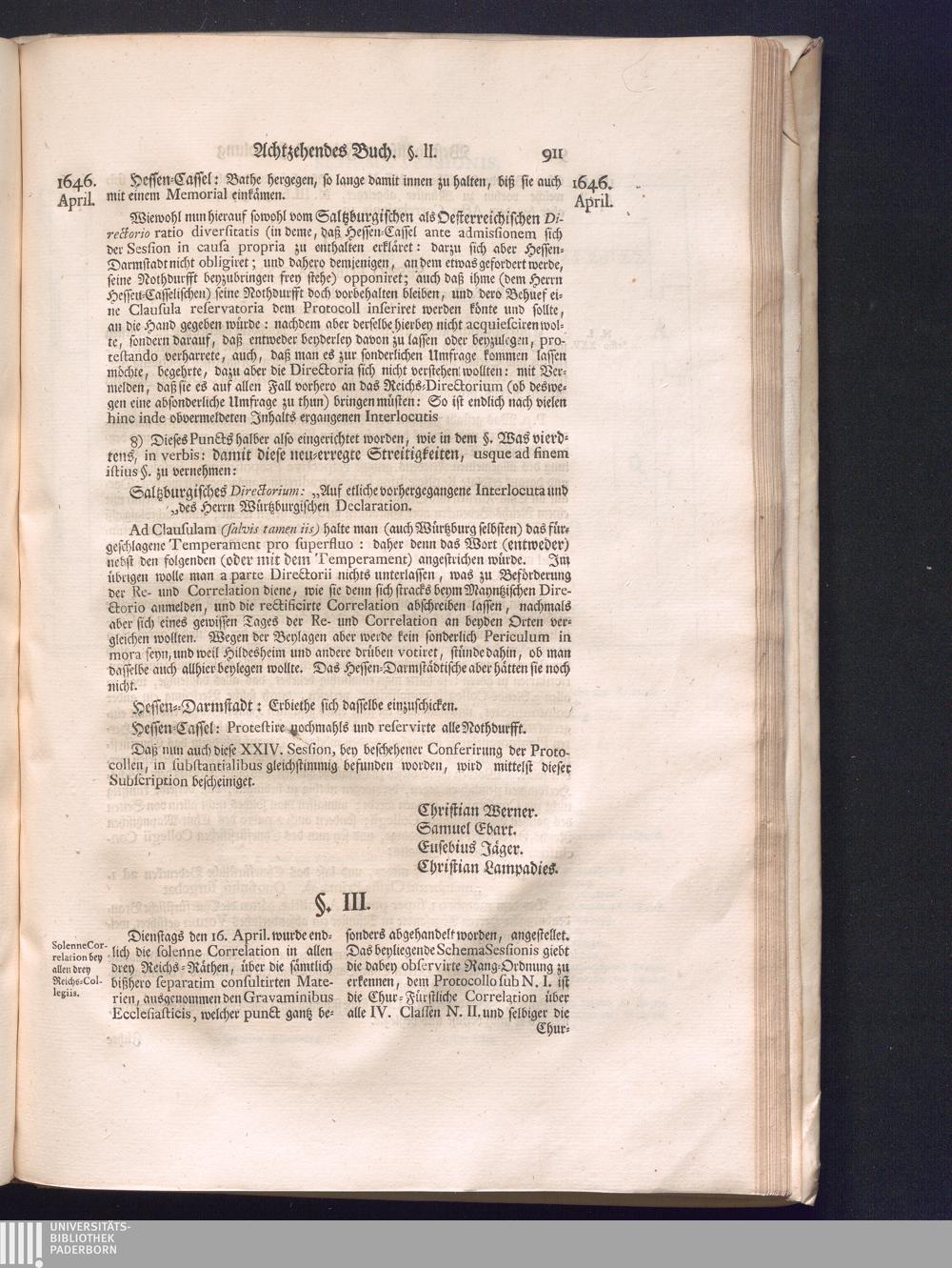 Zweyter Theil (1734) Worinnen enthalten, was vom Monath October Anno 1645. biß in den Monath Martium Ann. 1646. zwischen Jhro Römisch-Kayserlichen Majestät, dann den Beyden Cronen Franckreich und Schweden, ingleichen des Heiligen Römischen Reichs Chur-Fürsten, Fürsten und Ständen, zu Oßnabrück und Münster gehandelt worden