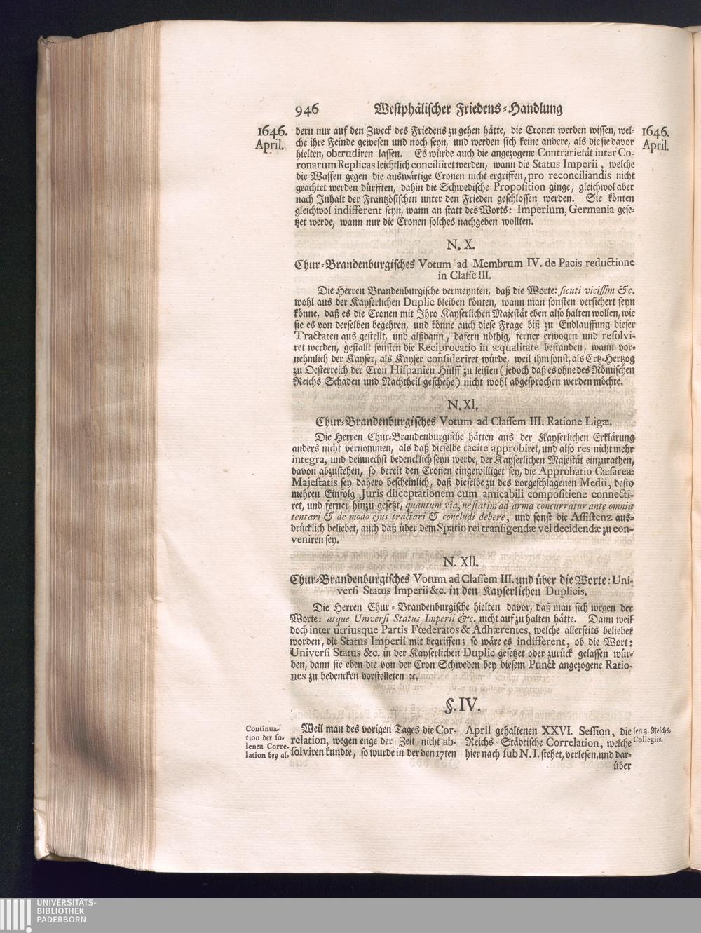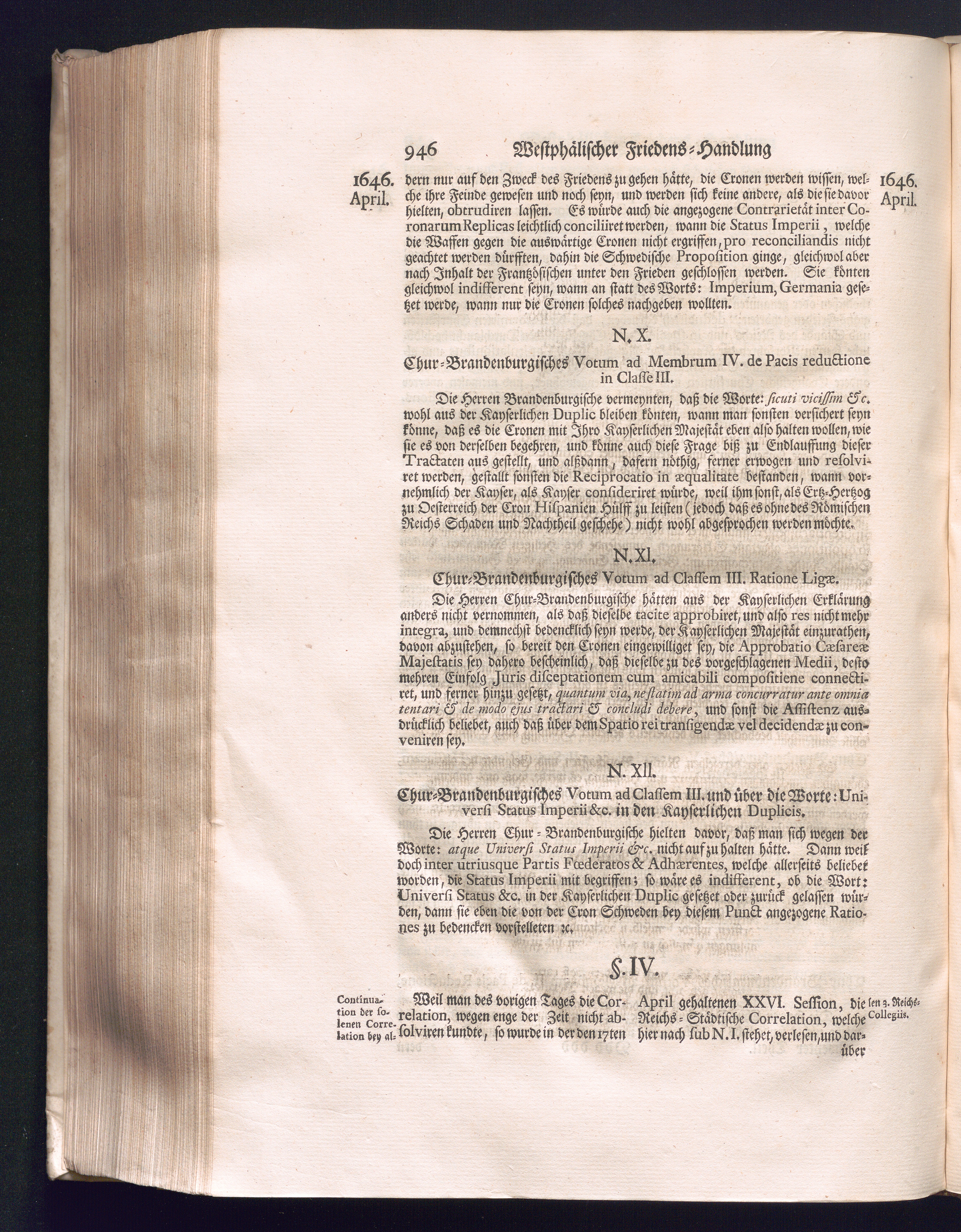 Zweyter Theil (1734) Worinnen enthalten, was vom Monath October Anno 1645. biß in den Monath Martium Ann. 1646. zwischen Jhro Römisch-Kayserlichen Majestät, dann den Beyden Cronen Franckreich und Schweden, ingleichen des Heiligen Römischen Reichs Chur-Fürsten, Fürsten und Ständen, zu Oßnabrück und Münster gehandelt worden