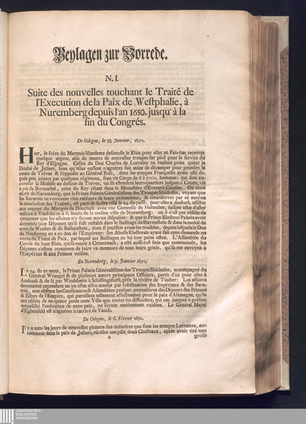 Zweyter und letzter Theil (1737) Worinnen enthalten, wie und welchergestalt die würckliche Vollziehung des Westphälischen Friedens, sowohl in puncto Exauctorationis Militæ und Evacuationis Locorum, als auch und vornehmlich in dem hochwichtigen puncto Restitutionis ex Capite Amnestiæ & Gravaminum, biß zum völligen Schluß des Congressus, Anno 1651, geschehen ist, in einer ausführlichen Historischen Erzehlung, mit beygefügten authentischen Urkunden, auch einem vollständigen Register