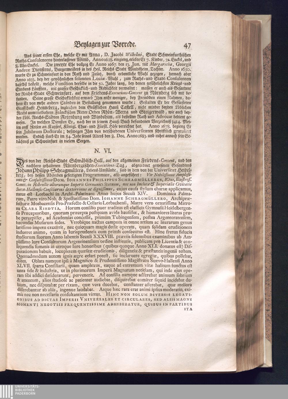 Zweyter und letzter Theil (1737) Worinnen enthalten, wie und welchergestalt die würckliche Vollziehung des Westphälischen Friedens, sowohl in puncto Exauctorationis Militæ und Evacuationis Locorum, als auch und vornehmlich in dem hochwichtigen puncto Restitutionis ex Capite Amnestiæ & Gravaminum, biß zum völligen Schluß des Congressus, Anno 1651, geschehen ist, in einer ausführlichen Historischen Erzehlung, mit beygefügten authentischen Urkunden, auch einem vollständigen Register