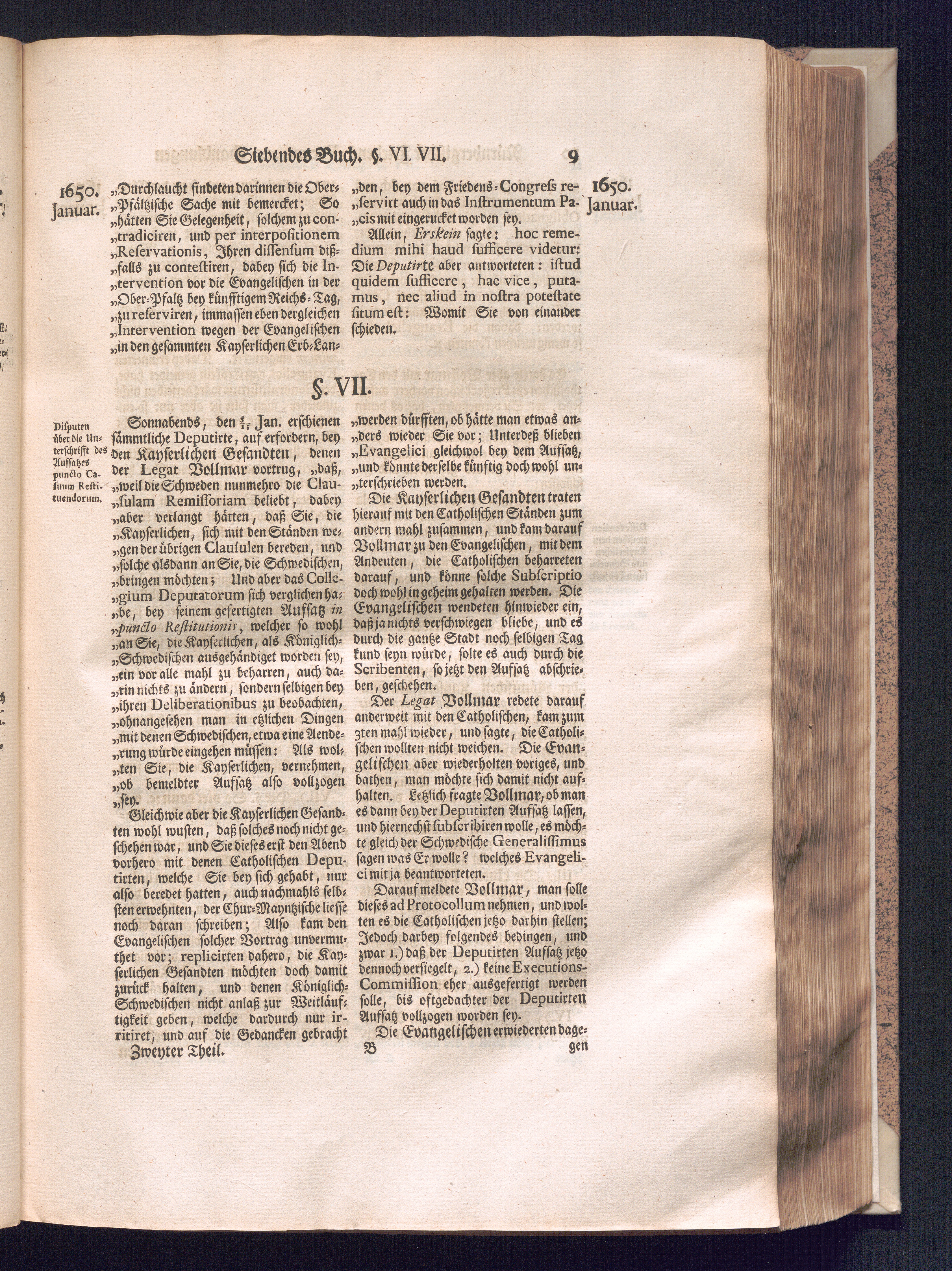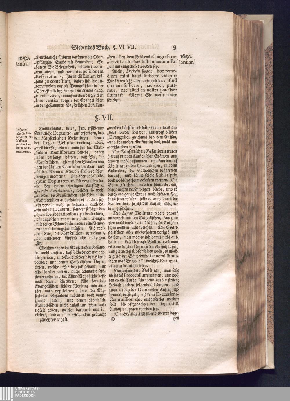Zweyter und letzter Theil (1737) Worinnen enthalten, wie und welchergestalt die würckliche Vollziehung des Westphälischen Friedens, sowohl in puncto Exauctorationis Militæ und Evacuationis Locorum, als auch und vornehmlich in dem hochwichtigen puncto Restitutionis ex Capite Amnestiæ & Gravaminum, biß zum völligen Schluß des Congressus, Anno 1651, geschehen ist, in einer ausführlichen Historischen Erzehlung, mit beygefügten authentischen Urkunden, auch einem vollständigen Register