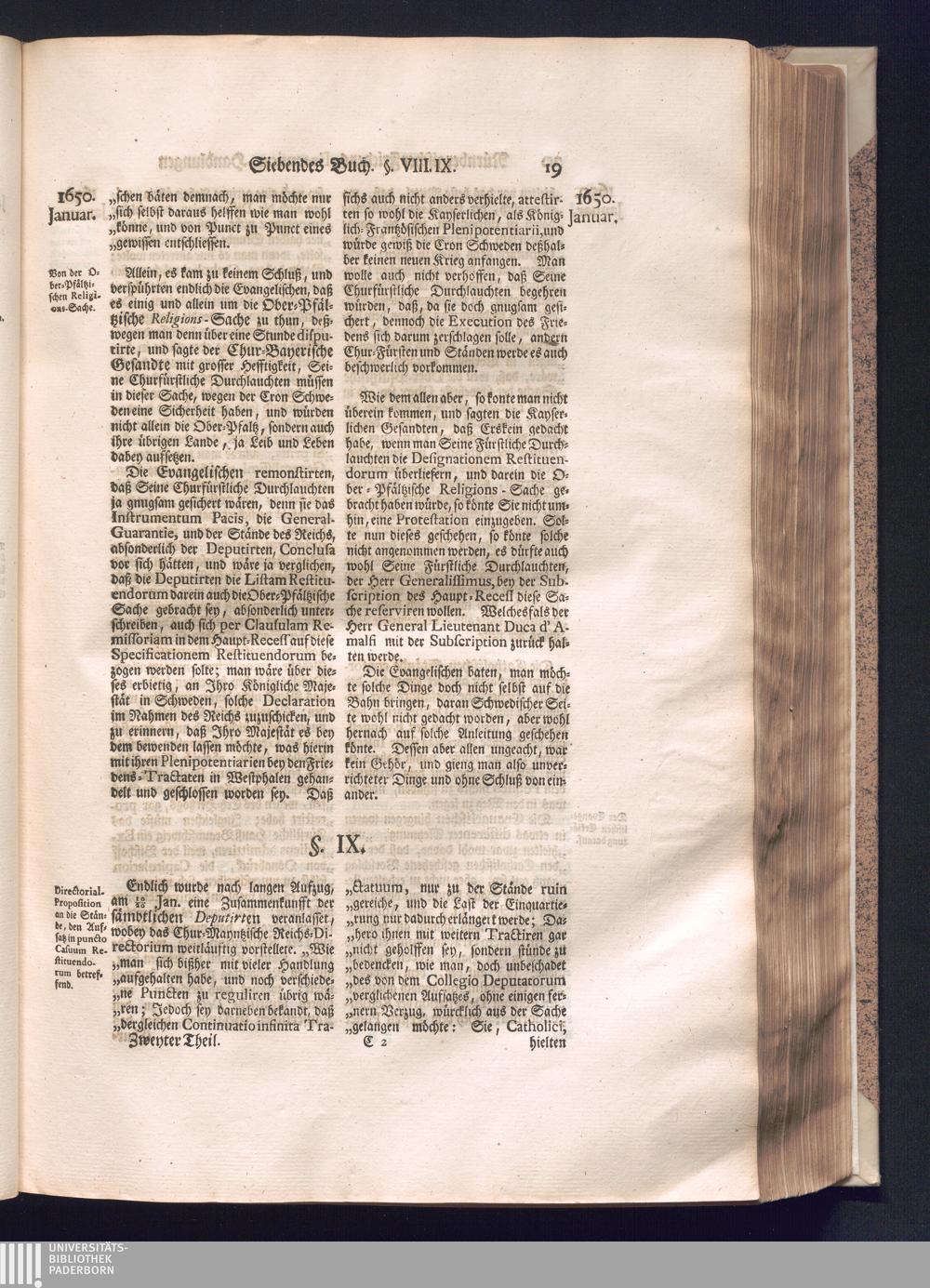 Zweyter und letzter Theil (1737) Worinnen enthalten, wie und welchergestalt die würckliche Vollziehung des Westphälischen Friedens, sowohl in puncto Exauctorationis Militæ und Evacuationis Locorum, als auch und vornehmlich in dem hochwichtigen puncto Restitutionis ex Capite Amnestiæ & Gravaminum, biß zum völligen Schluß des Congressus, Anno 1651, geschehen ist, in einer ausführlichen Historischen Erzehlung, mit beygefügten authentischen Urkunden, auch einem vollständigen Register