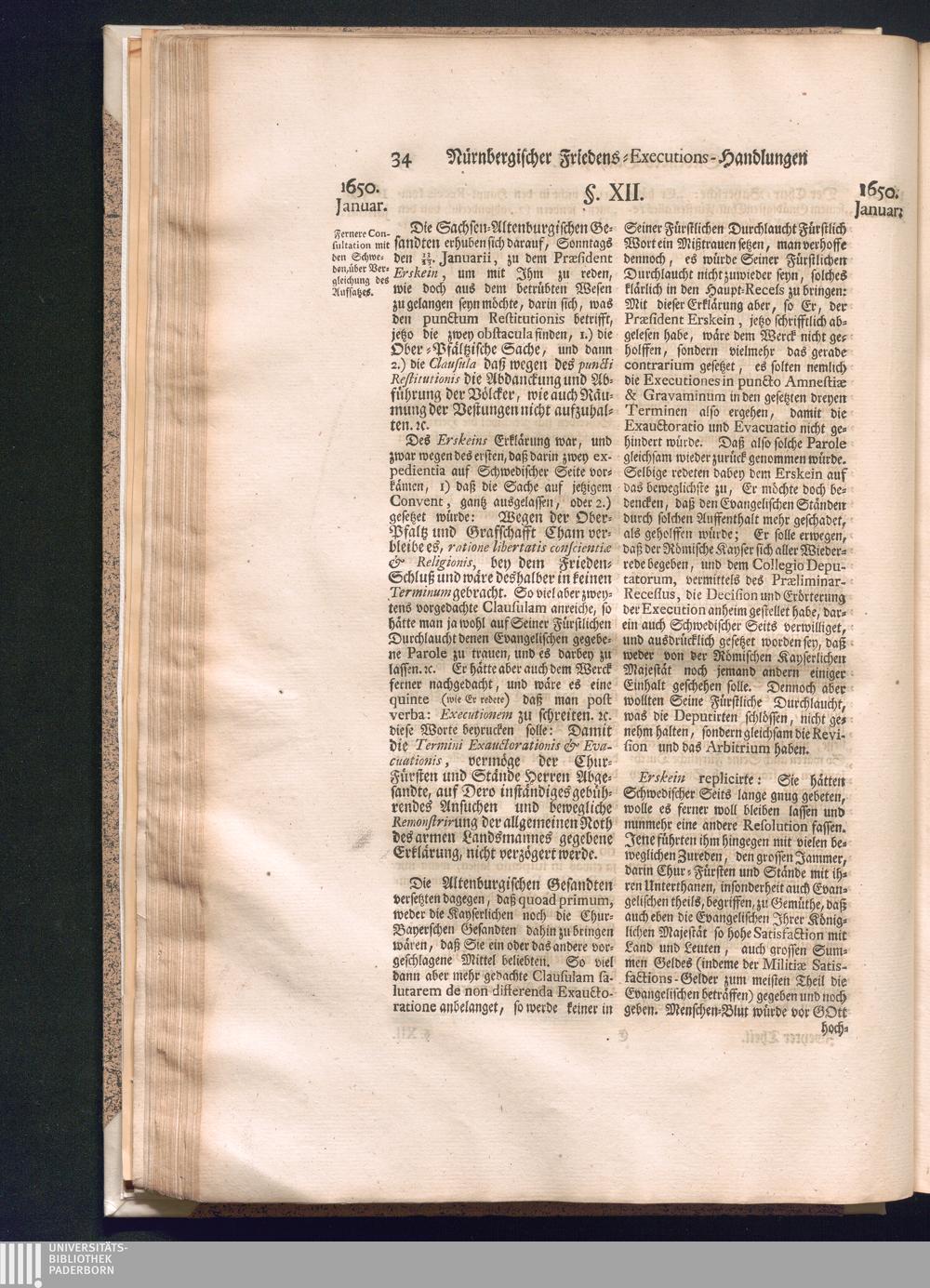 Zweyter und letzter Theil (1737) Worinnen enthalten, wie und welchergestalt die würckliche Vollziehung des Westphälischen Friedens, sowohl in puncto Exauctorationis Militæ und Evacuationis Locorum, als auch und vornehmlich in dem hochwichtigen puncto Restitutionis ex Capite Amnestiæ & Gravaminum, biß zum völligen Schluß des Congressus, Anno 1651, geschehen ist, in einer ausführlichen Historischen Erzehlung, mit beygefügten authentischen Urkunden, auch einem vollständigen Register