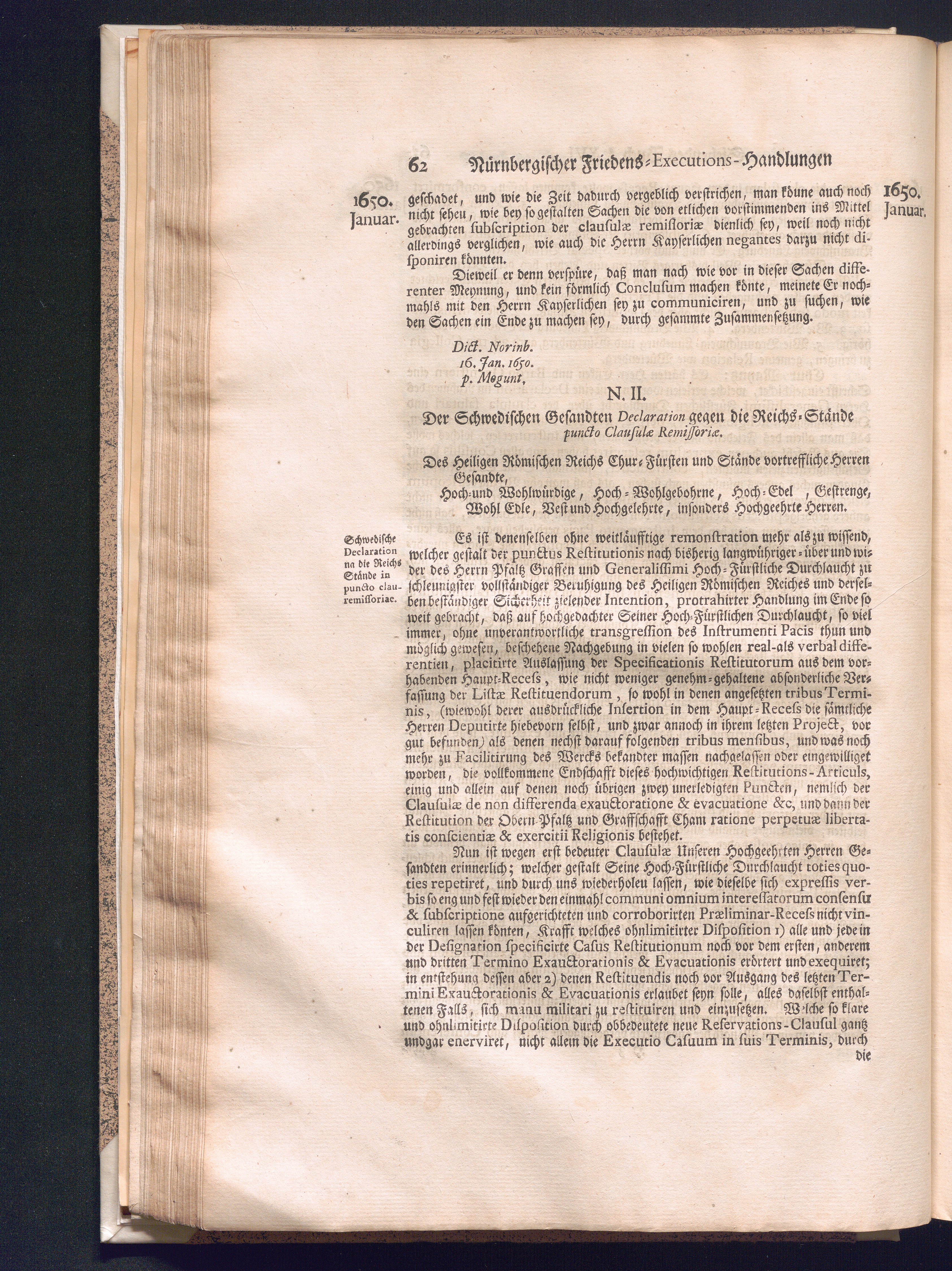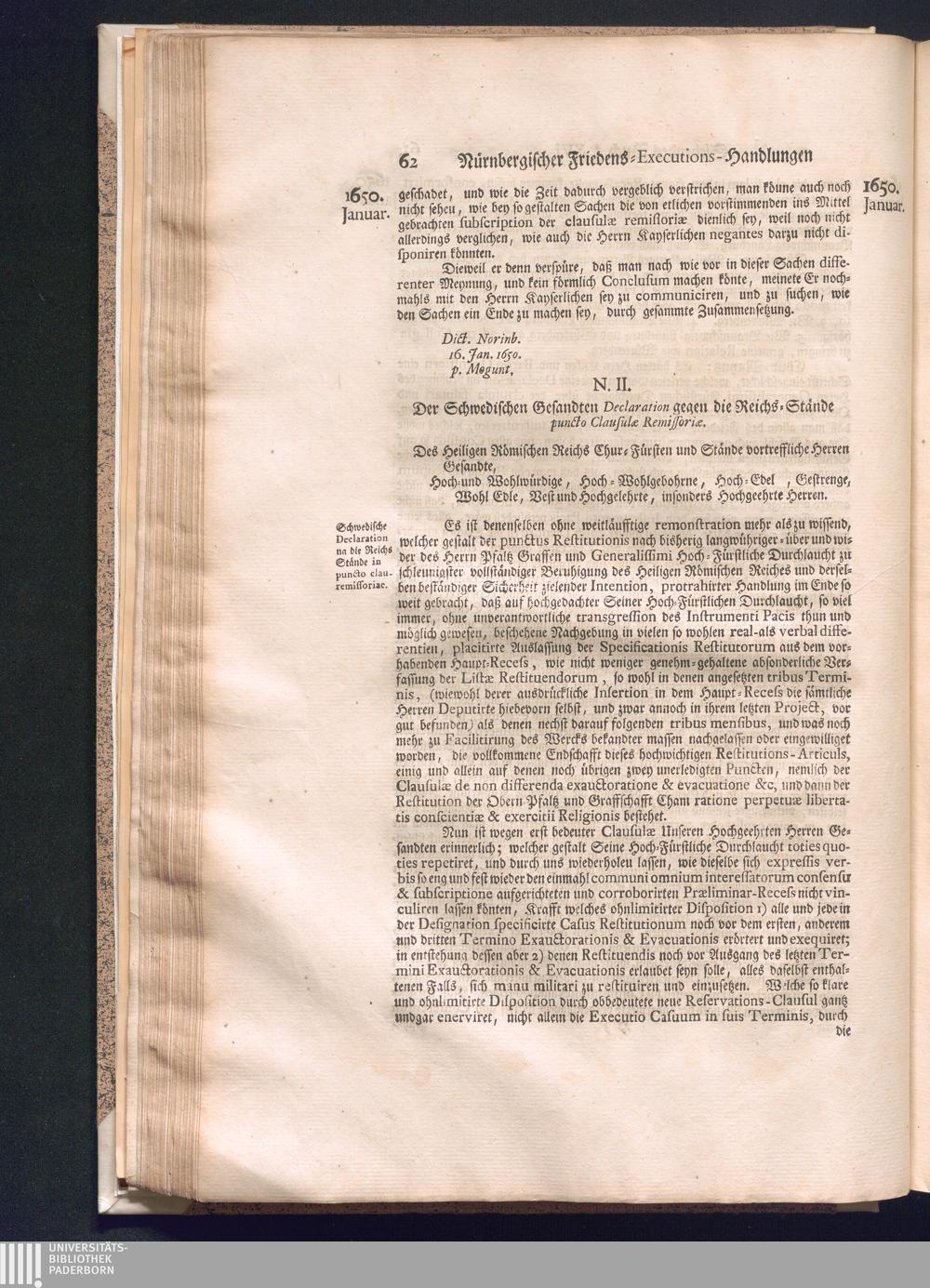 Zweyter und letzter Theil (1737) Worinnen enthalten, wie und welchergestalt die würckliche Vollziehung des Westphälischen Friedens, sowohl in puncto Exauctorationis Militæ und Evacuationis Locorum, als auch und vornehmlich in dem hochwichtigen puncto Restitutionis ex Capite Amnestiæ & Gravaminum, biß zum völligen Schluß des Congressus, Anno 1651, geschehen ist, in einer ausführlichen Historischen Erzehlung, mit beygefügten authentischen Urkunden, auch einem vollständigen Register
