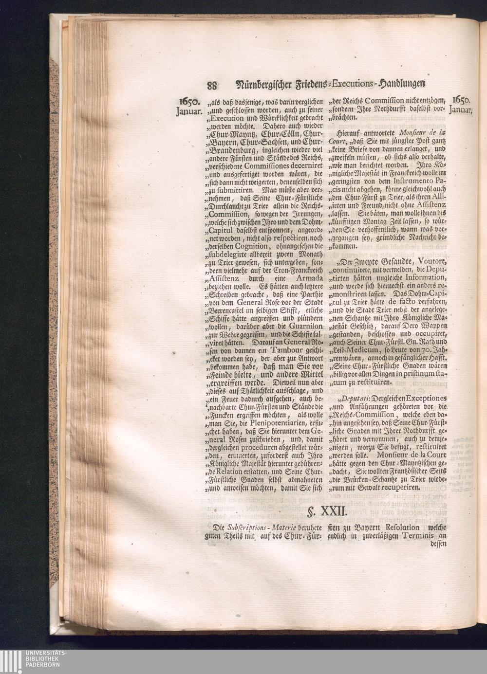 Zweyter und letzter Theil (1737) Worinnen enthalten, wie und welchergestalt die würckliche Vollziehung des Westphälischen Friedens, sowohl in puncto Exauctorationis Militæ und Evacuationis Locorum, als auch und vornehmlich in dem hochwichtigen puncto Restitutionis ex Capite Amnestiæ & Gravaminum, biß zum völligen Schluß des Congressus, Anno 1651, geschehen ist, in einer ausführlichen Historischen Erzehlung, mit beygefügten authentischen Urkunden, auch einem vollständigen Register