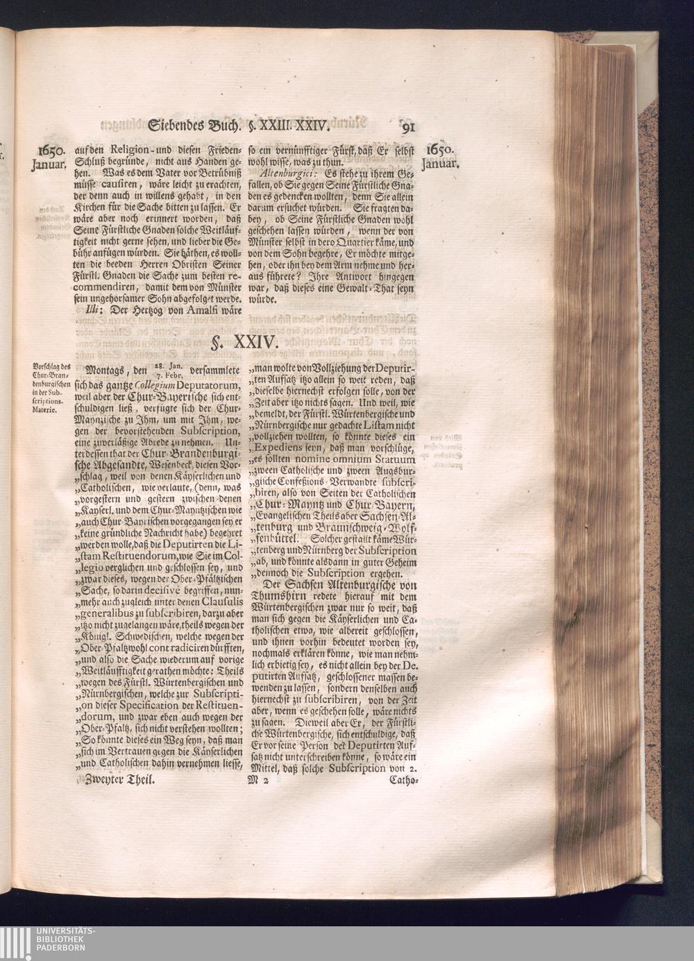 Zweyter und letzter Theil (1737) Worinnen enthalten, wie und welchergestalt die würckliche Vollziehung des Westphälischen Friedens, sowohl in puncto Exauctorationis Militæ und Evacuationis Locorum, als auch und vornehmlich in dem hochwichtigen puncto Restitutionis ex Capite Amnestiæ & Gravaminum, biß zum völligen Schluß des Congressus, Anno 1651, geschehen ist, in einer ausführlichen Historischen Erzehlung, mit beygefügten authentischen Urkunden, auch einem vollständigen Register
