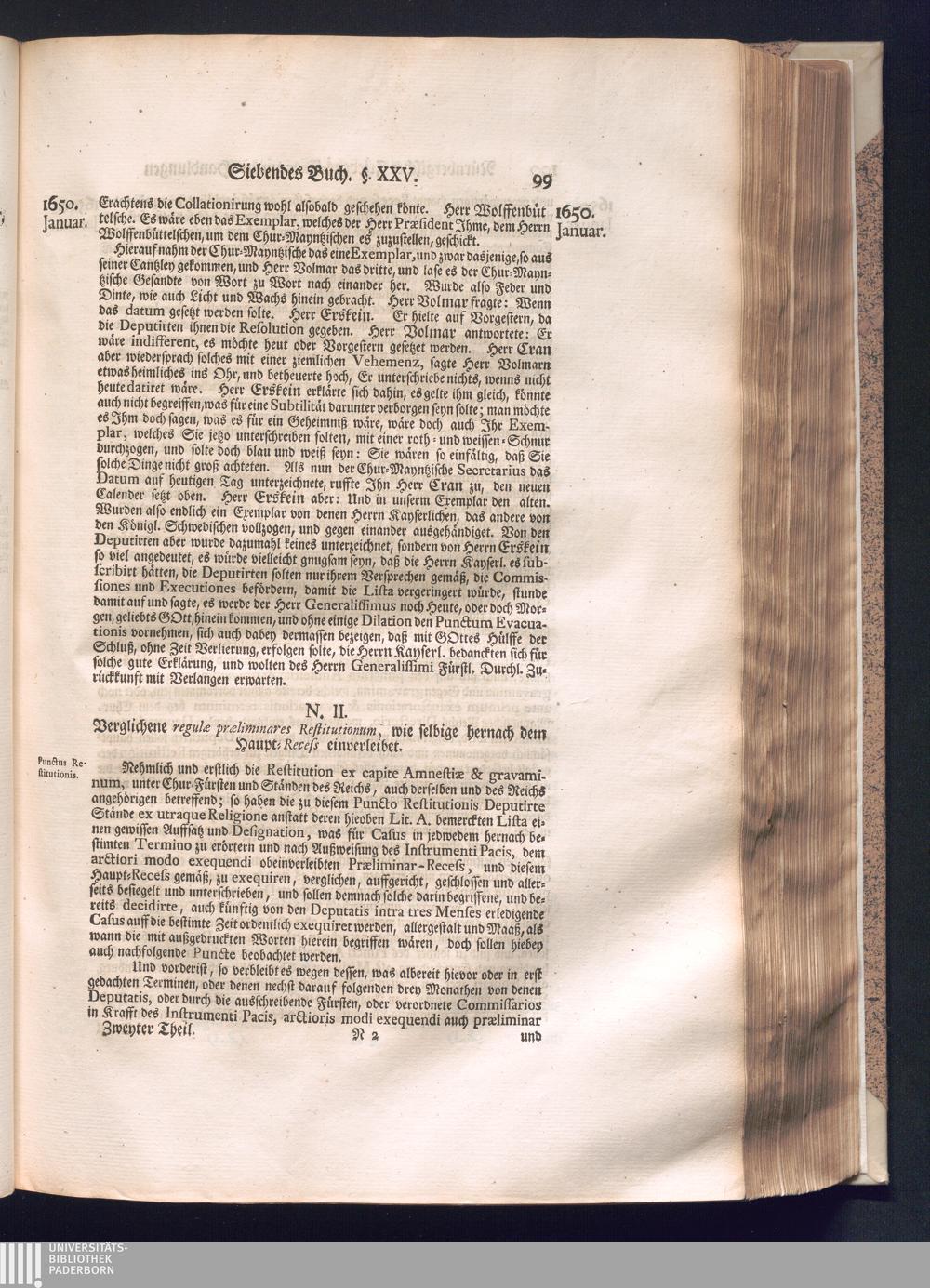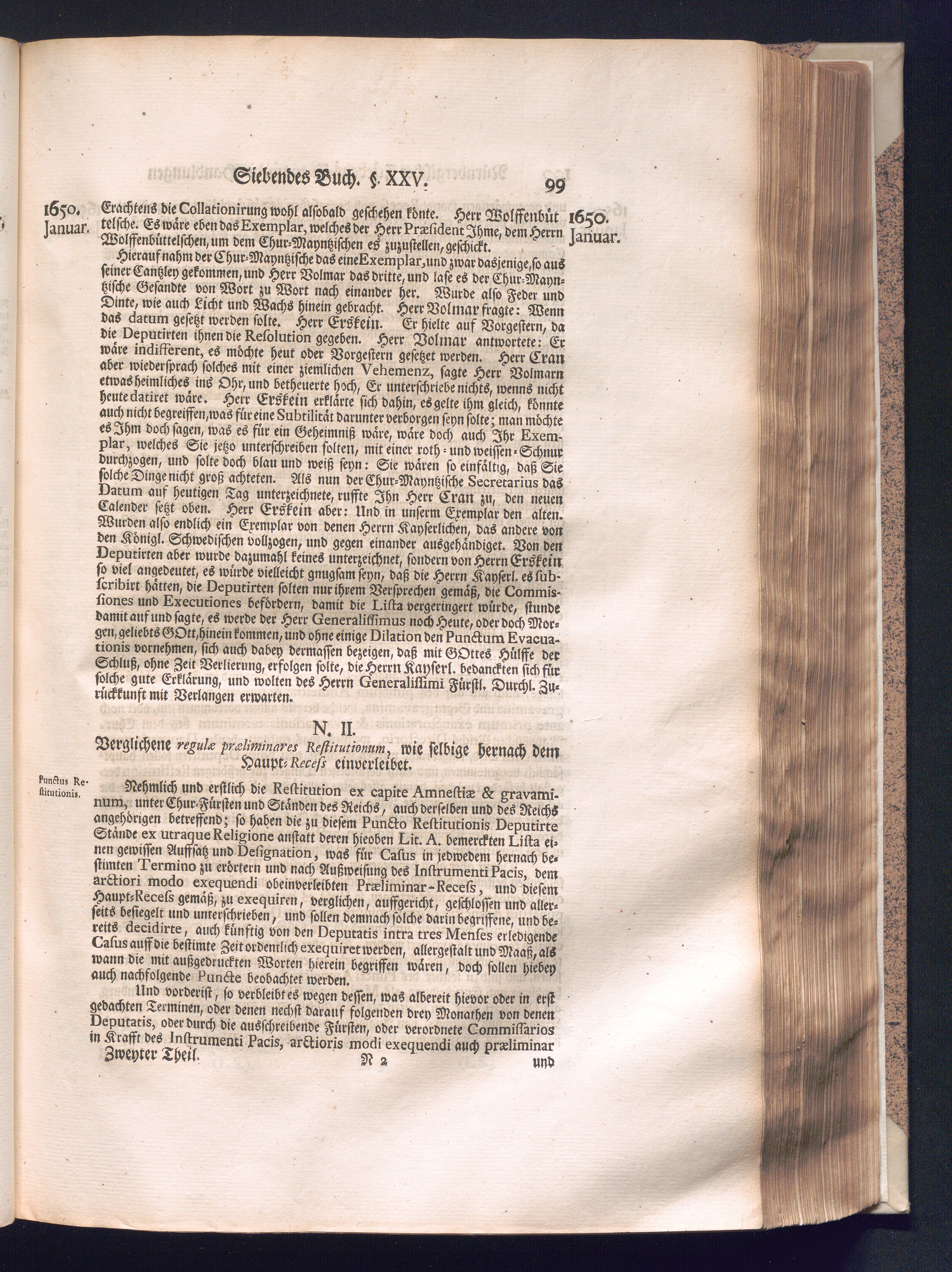 Zweyter und letzter Theil (1737) Worinnen enthalten, wie und welchergestalt die würckliche Vollziehung des Westphälischen Friedens, sowohl in puncto Exauctorationis Militæ und Evacuationis Locorum, als auch und vornehmlich in dem hochwichtigen puncto Restitutionis ex Capite Amnestiæ & Gravaminum, biß zum völligen Schluß des Congressus, Anno 1651, geschehen ist, in einer ausführlichen Historischen Erzehlung, mit beygefügten authentischen Urkunden, auch einem vollständigen Register