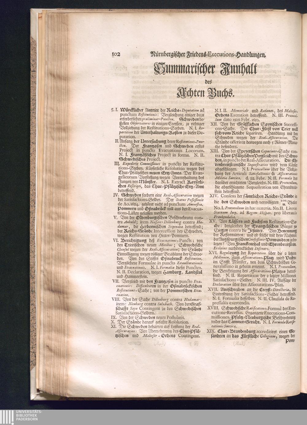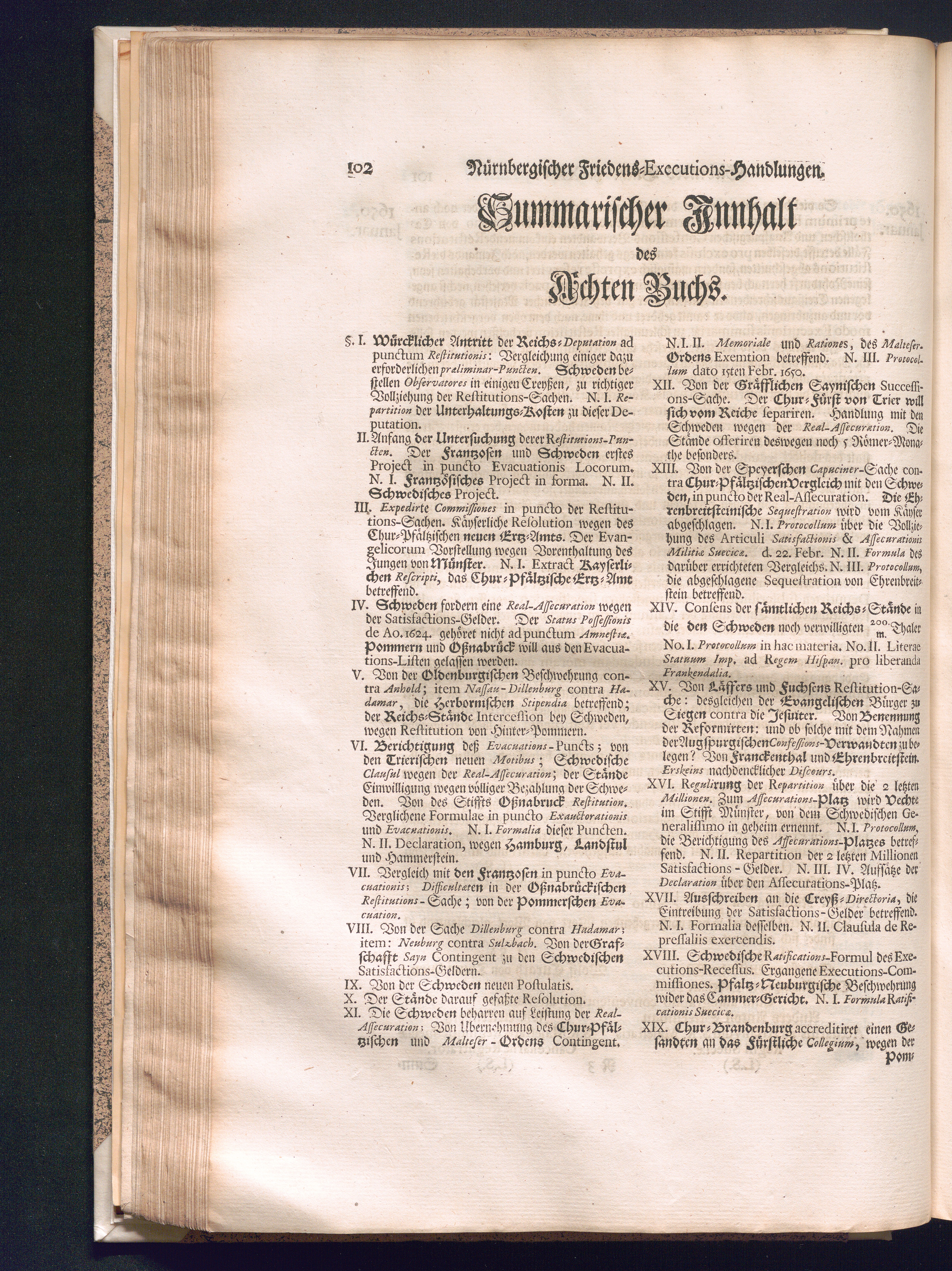 Zweyter und letzter Theil (1737) Worinnen enthalten, wie und welchergestalt die würckliche Vollziehung des Westphälischen Friedens, sowohl in puncto Exauctorationis Militæ und Evacuationis Locorum, als auch und vornehmlich in dem hochwichtigen puncto Restitutionis ex Capite Amnestiæ & Gravaminum, biß zum völligen Schluß des Congressus, Anno 1651, geschehen ist, in einer ausführlichen Historischen Erzehlung, mit beygefügten authentischen Urkunden, auch einem vollständigen Register