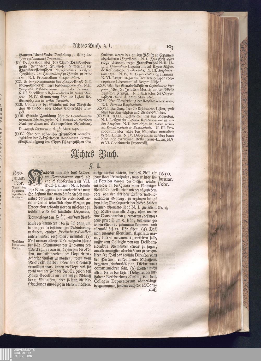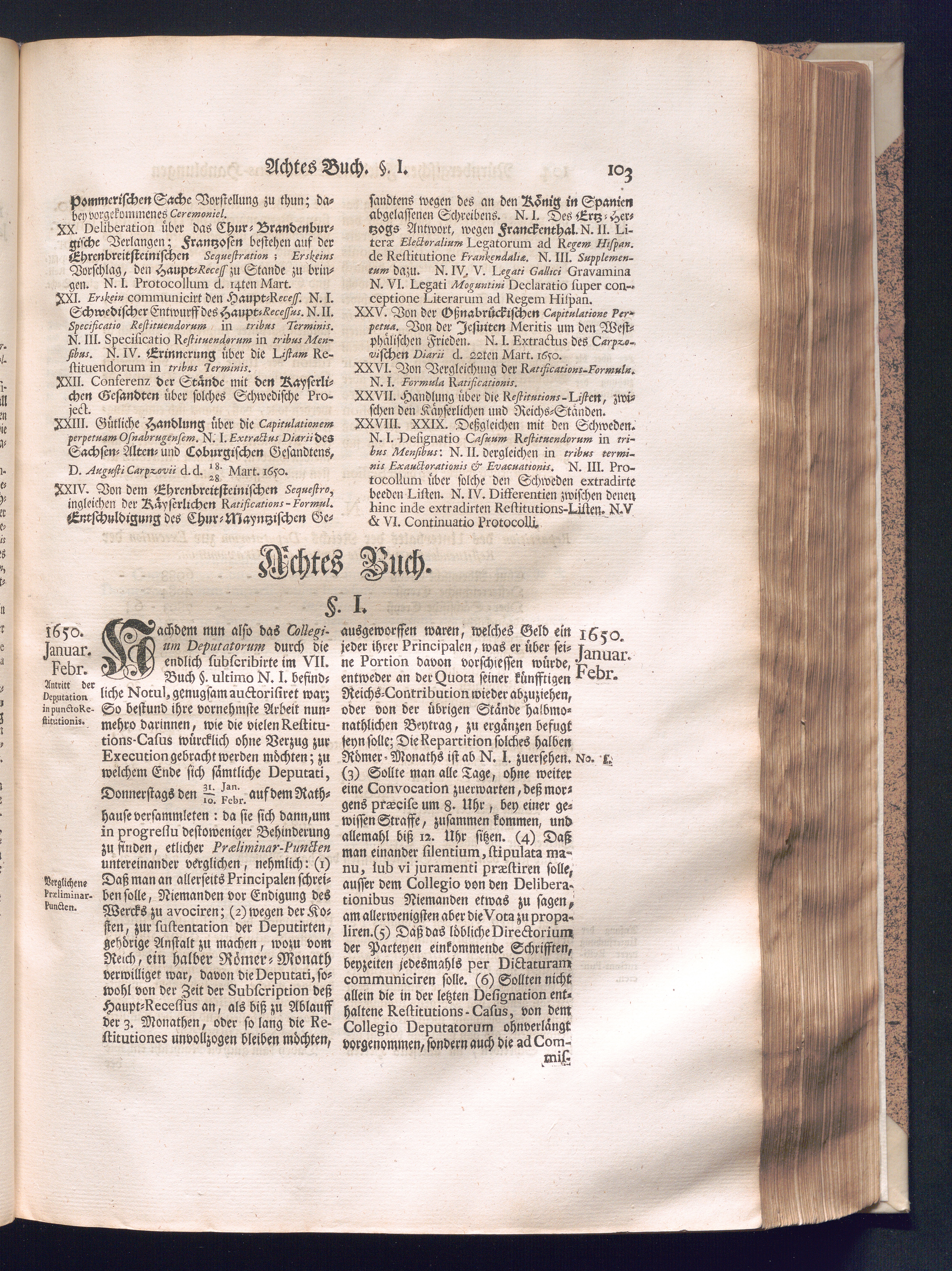 Zweyter und letzter Theil (1737) Worinnen enthalten, wie und welchergestalt die würckliche Vollziehung des Westphälischen Friedens, sowohl in puncto Exauctorationis Militæ und Evacuationis Locorum, als auch und vornehmlich in dem hochwichtigen puncto Restitutionis ex Capite Amnestiæ & Gravaminum, biß zum völligen Schluß des Congressus, Anno 1651, geschehen ist, in einer ausführlichen Historischen Erzehlung, mit beygefügten authentischen Urkunden, auch einem vollständigen Register