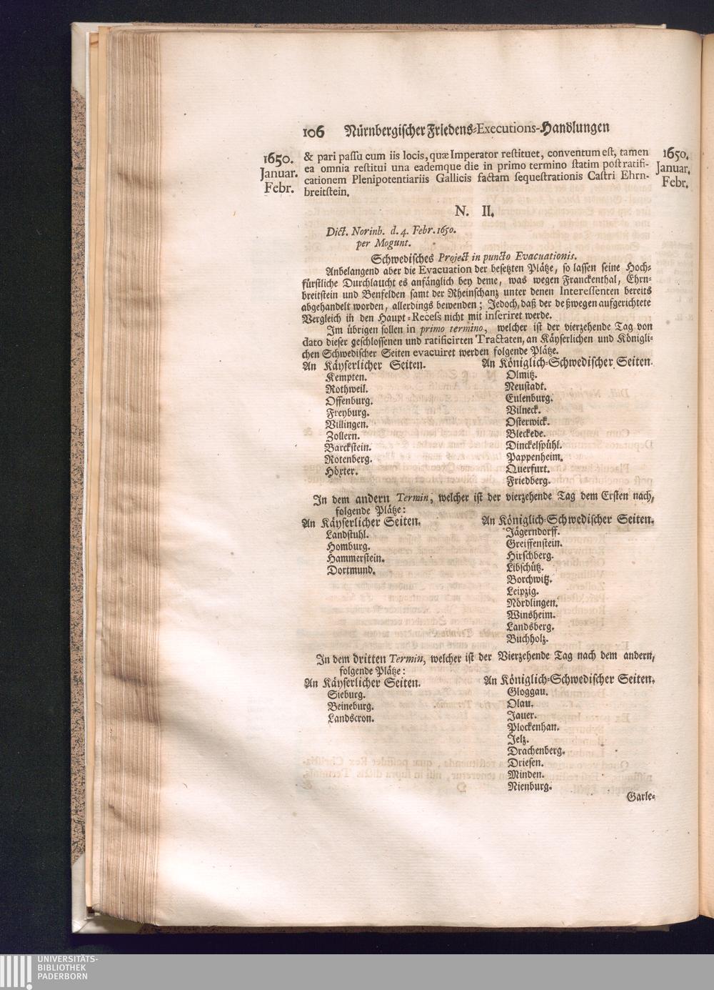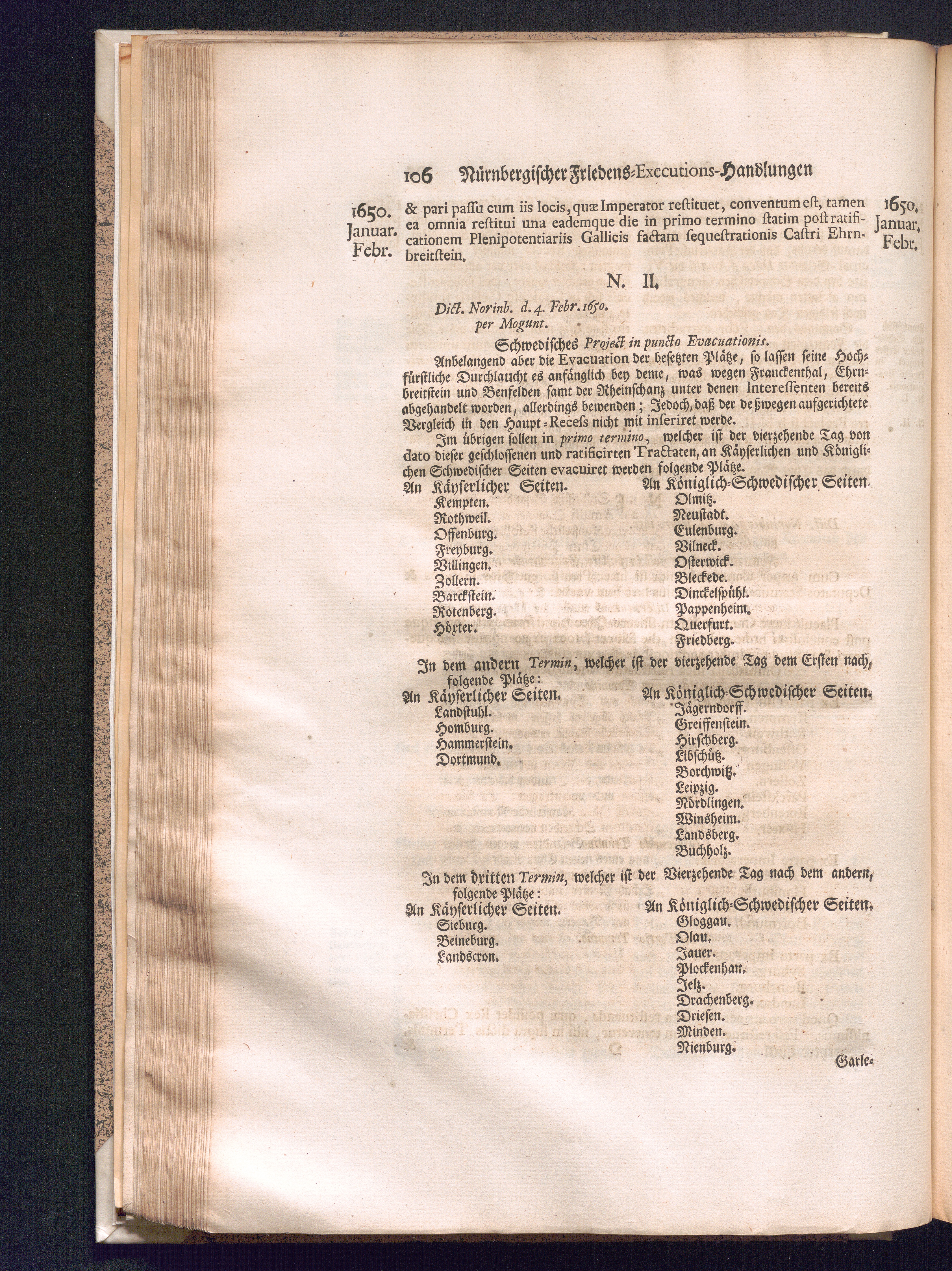 Zweyter und letzter Theil (1737) Worinnen enthalten, wie und welchergestalt die würckliche Vollziehung des Westphälischen Friedens, sowohl in puncto Exauctorationis Militæ und Evacuationis Locorum, als auch und vornehmlich in dem hochwichtigen puncto Restitutionis ex Capite Amnestiæ & Gravaminum, biß zum völligen Schluß des Congressus, Anno 1651, geschehen ist, in einer ausführlichen Historischen Erzehlung, mit beygefügten authentischen Urkunden, auch einem vollständigen Register
