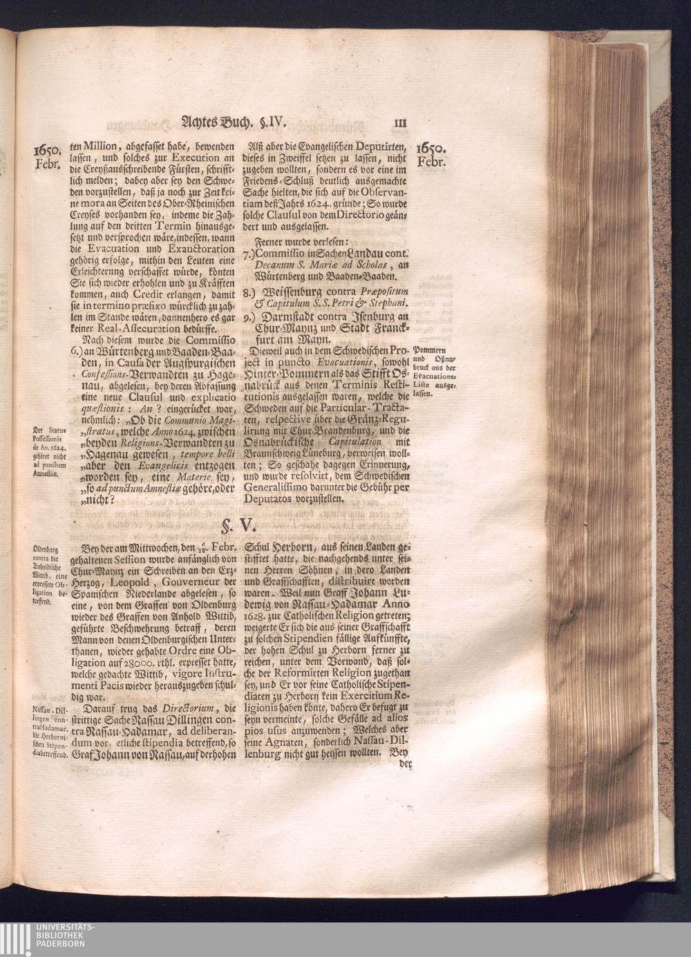 Zweyter und letzter Theil (1737) Worinnen enthalten, wie und welchergestalt die würckliche Vollziehung des Westphälischen Friedens, sowohl in puncto Exauctorationis Militæ und Evacuationis Locorum, als auch und vornehmlich in dem hochwichtigen puncto Restitutionis ex Capite Amnestiæ & Gravaminum, biß zum völligen Schluß des Congressus, Anno 1651, geschehen ist, in einer ausführlichen Historischen Erzehlung, mit beygefügten authentischen Urkunden, auch einem vollständigen Register