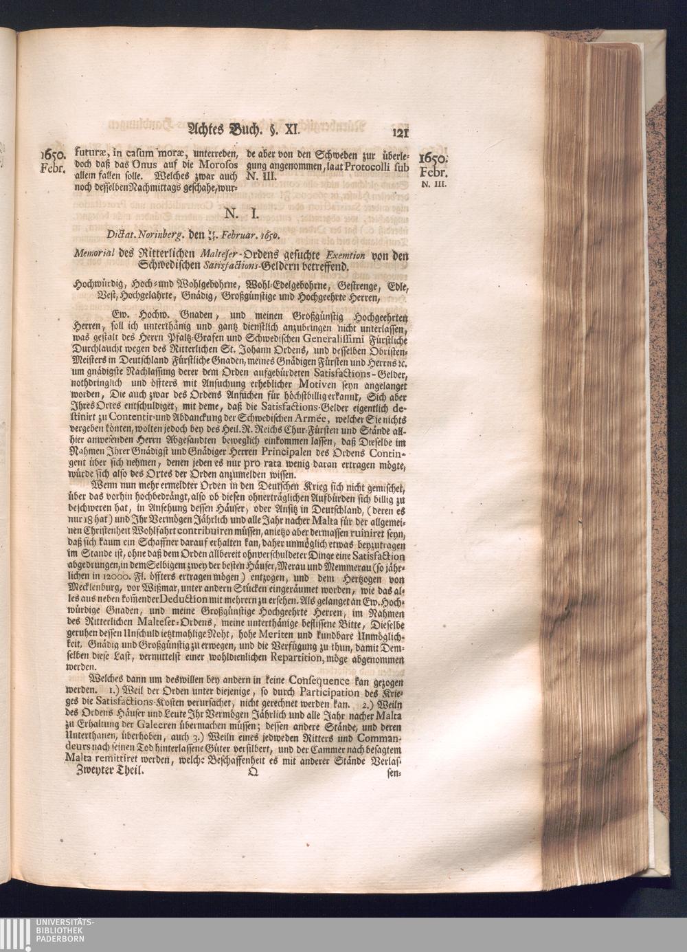 Zweyter und letzter Theil (1737) Worinnen enthalten, wie und welchergestalt die würckliche Vollziehung des Westphälischen Friedens, sowohl in puncto Exauctorationis Militæ und Evacuationis Locorum, als auch und vornehmlich in dem hochwichtigen puncto Restitutionis ex Capite Amnestiæ & Gravaminum, biß zum völligen Schluß des Congressus, Anno 1651, geschehen ist, in einer ausführlichen Historischen Erzehlung, mit beygefügten authentischen Urkunden, auch einem vollständigen Register