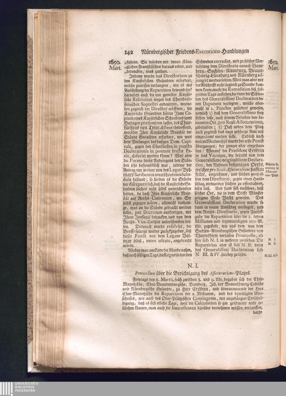 Zweyter und letzter Theil (1737) Worinnen enthalten, wie und welchergestalt die würckliche Vollziehung des Westphälischen Friedens, sowohl in puncto Exauctorationis Militæ und Evacuationis Locorum, als auch und vornehmlich in dem hochwichtigen puncto Restitutionis ex Capite Amnestiæ & Gravaminum, biß zum völligen Schluß des Congressus, Anno 1651, geschehen ist, in einer ausführlichen Historischen Erzehlung, mit beygefügten authentischen Urkunden, auch einem vollständigen Register