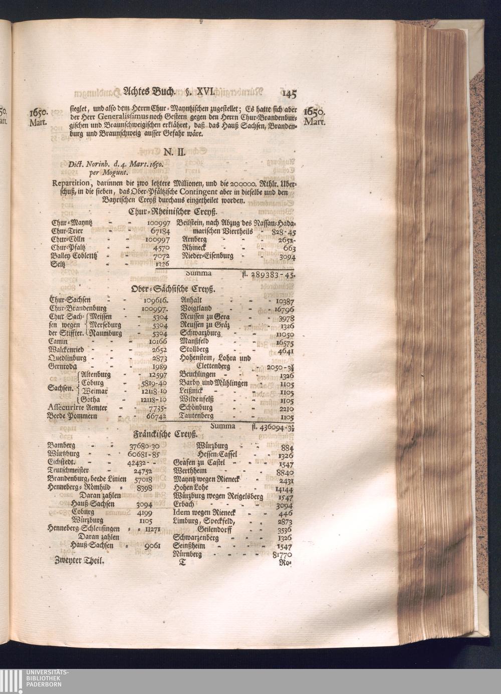 Zweyter und letzter Theil (1737) Worinnen enthalten, wie und welchergestalt die würckliche Vollziehung des Westphälischen Friedens, sowohl in puncto Exauctorationis Militæ und Evacuationis Locorum, als auch und vornehmlich in dem hochwichtigen puncto Restitutionis ex Capite Amnestiæ & Gravaminum, biß zum völligen Schluß des Congressus, Anno 1651, geschehen ist, in einer ausführlichen Historischen Erzehlung, mit beygefügten authentischen Urkunden, auch einem vollständigen Register