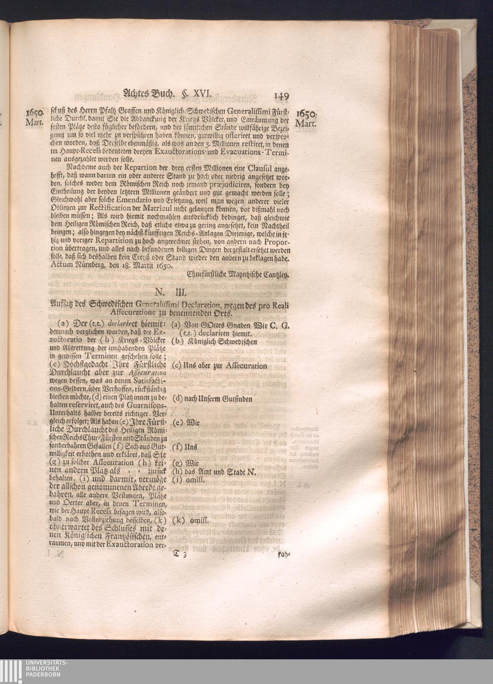 Zweyter und letzter Theil (1737) Worinnen enthalten, wie und welchergestalt die würckliche Vollziehung des Westphälischen Friedens, sowohl in puncto Exauctorationis Militæ und Evacuationis Locorum, als auch und vornehmlich in dem hochwichtigen puncto Restitutionis ex Capite Amnestiæ & Gravaminum, biß zum völligen Schluß des Congressus, Anno 1651, geschehen ist, in einer ausführlichen Historischen Erzehlung, mit beygefügten authentischen Urkunden, auch einem vollständigen Register