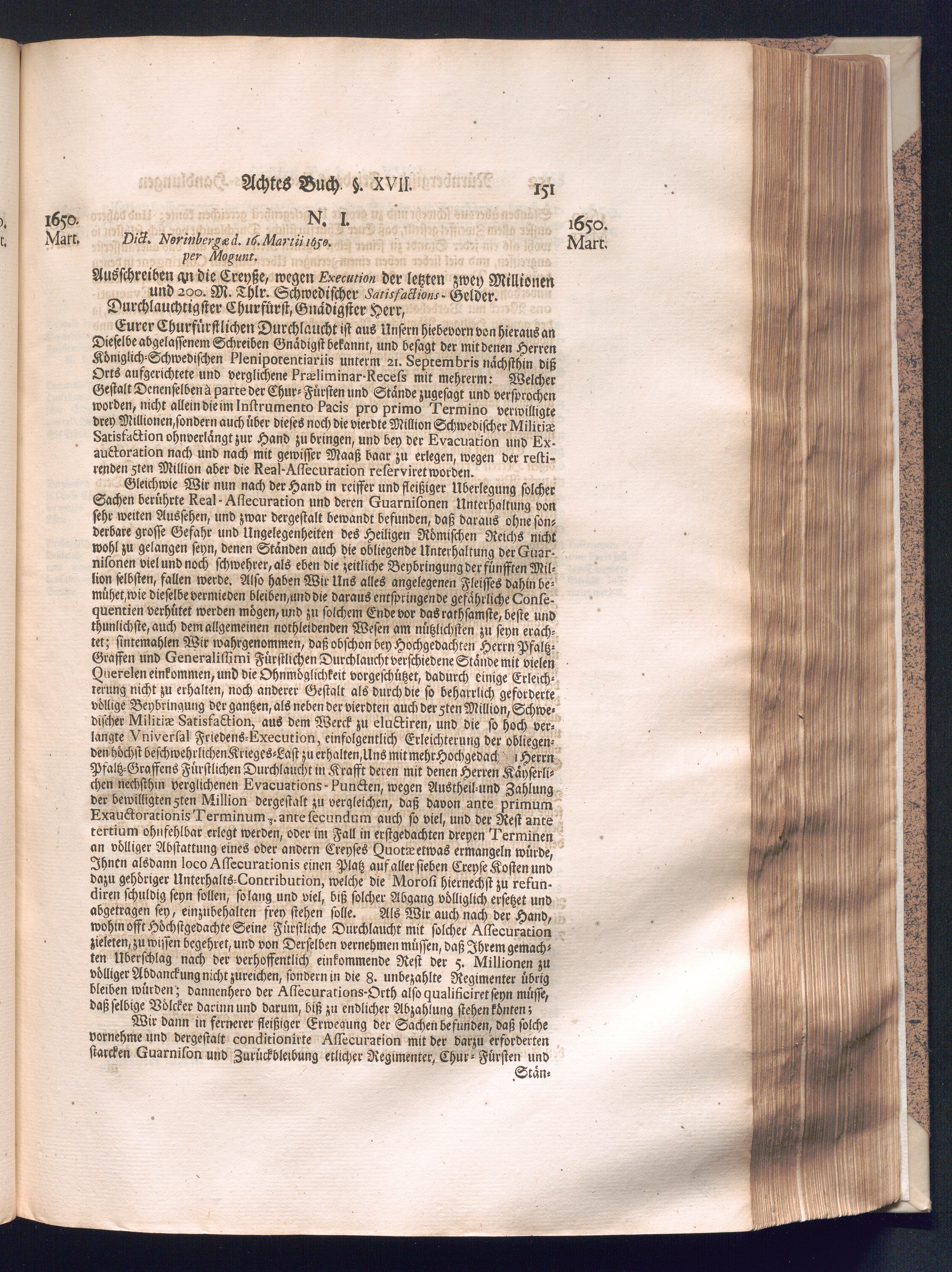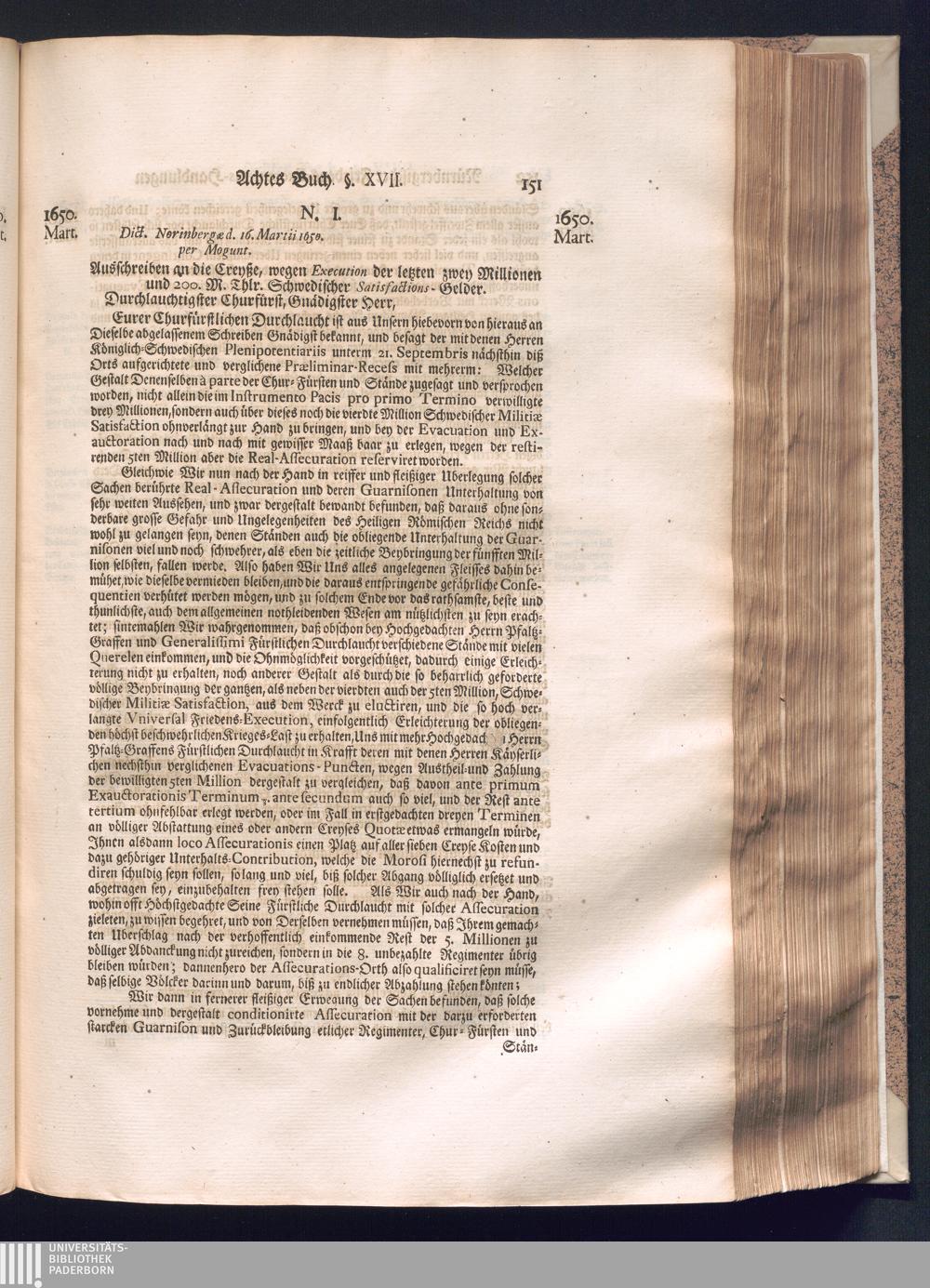 Zweyter und letzter Theil (1737) Worinnen enthalten, wie und welchergestalt die würckliche Vollziehung des Westphälischen Friedens, sowohl in puncto Exauctorationis Militæ und Evacuationis Locorum, als auch und vornehmlich in dem hochwichtigen puncto Restitutionis ex Capite Amnestiæ & Gravaminum, biß zum völligen Schluß des Congressus, Anno 1651, geschehen ist, in einer ausführlichen Historischen Erzehlung, mit beygefügten authentischen Urkunden, auch einem vollständigen Register