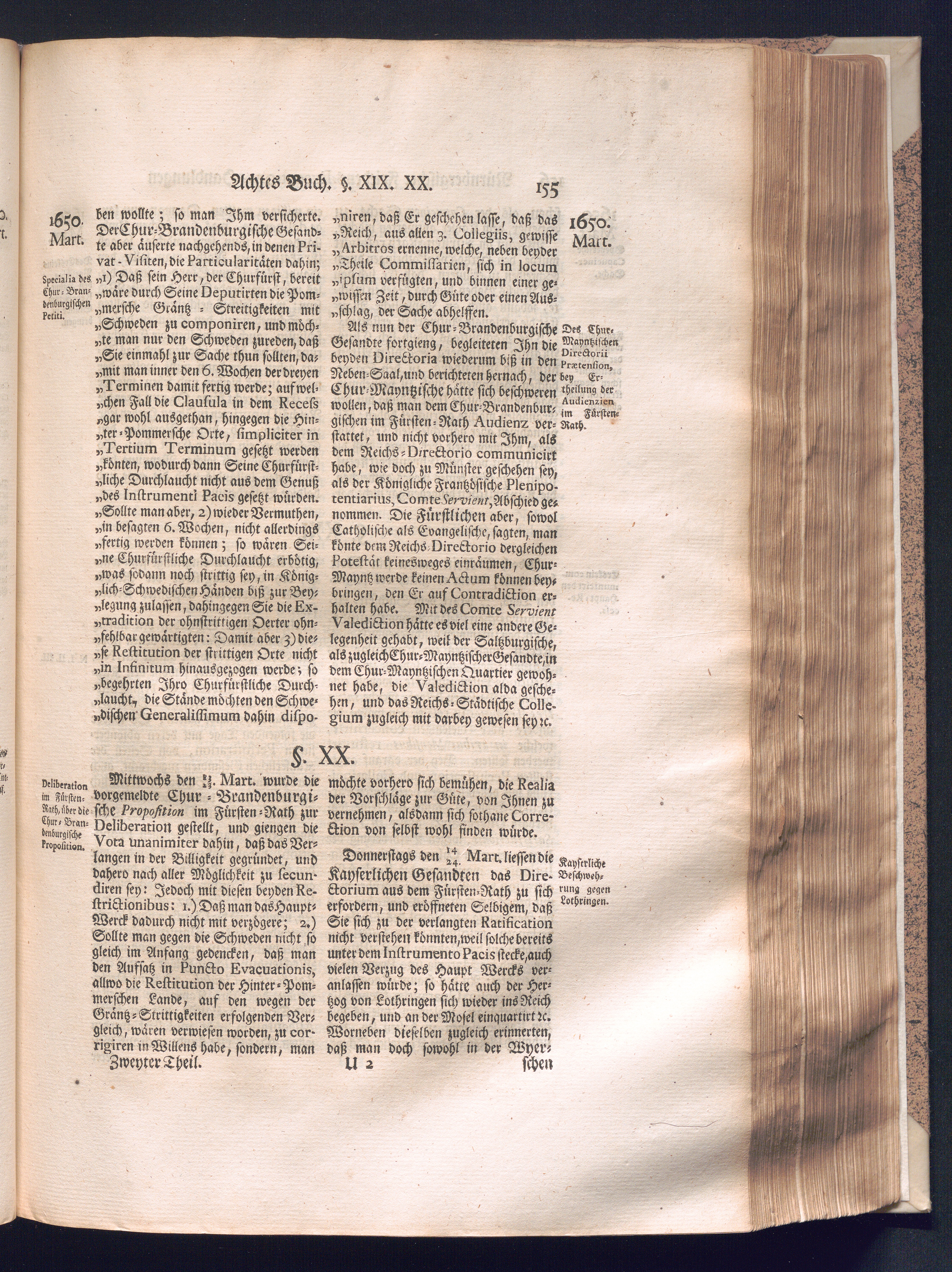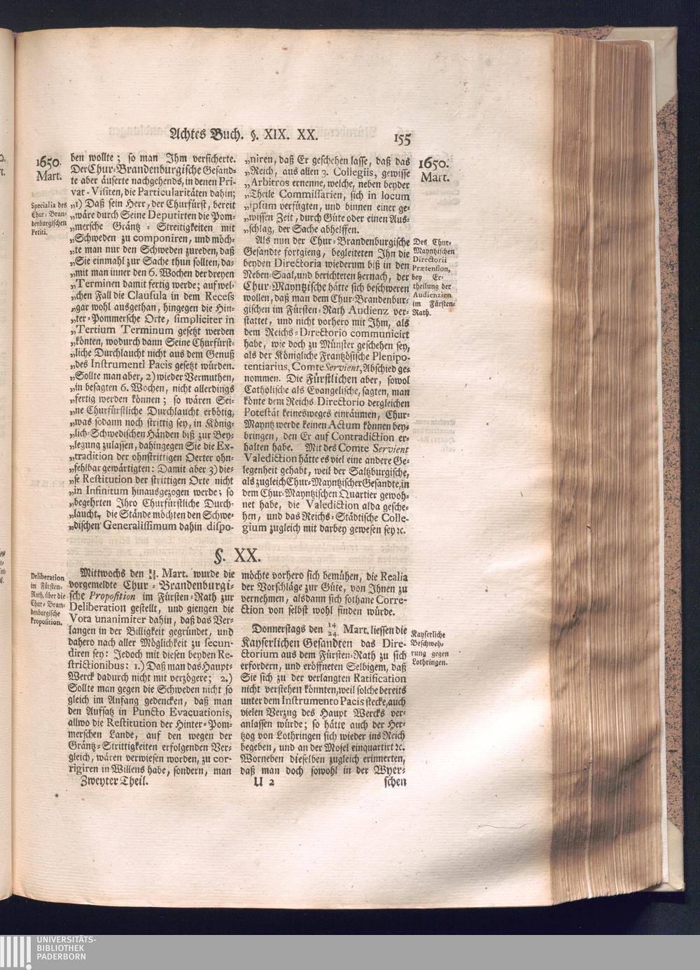 Zweyter und letzter Theil (1737) Worinnen enthalten, wie und welchergestalt die würckliche Vollziehung des Westphälischen Friedens, sowohl in puncto Exauctorationis Militæ und Evacuationis Locorum, als auch und vornehmlich in dem hochwichtigen puncto Restitutionis ex Capite Amnestiæ & Gravaminum, biß zum völligen Schluß des Congressus, Anno 1651, geschehen ist, in einer ausführlichen Historischen Erzehlung, mit beygefügten authentischen Urkunden, auch einem vollständigen Register