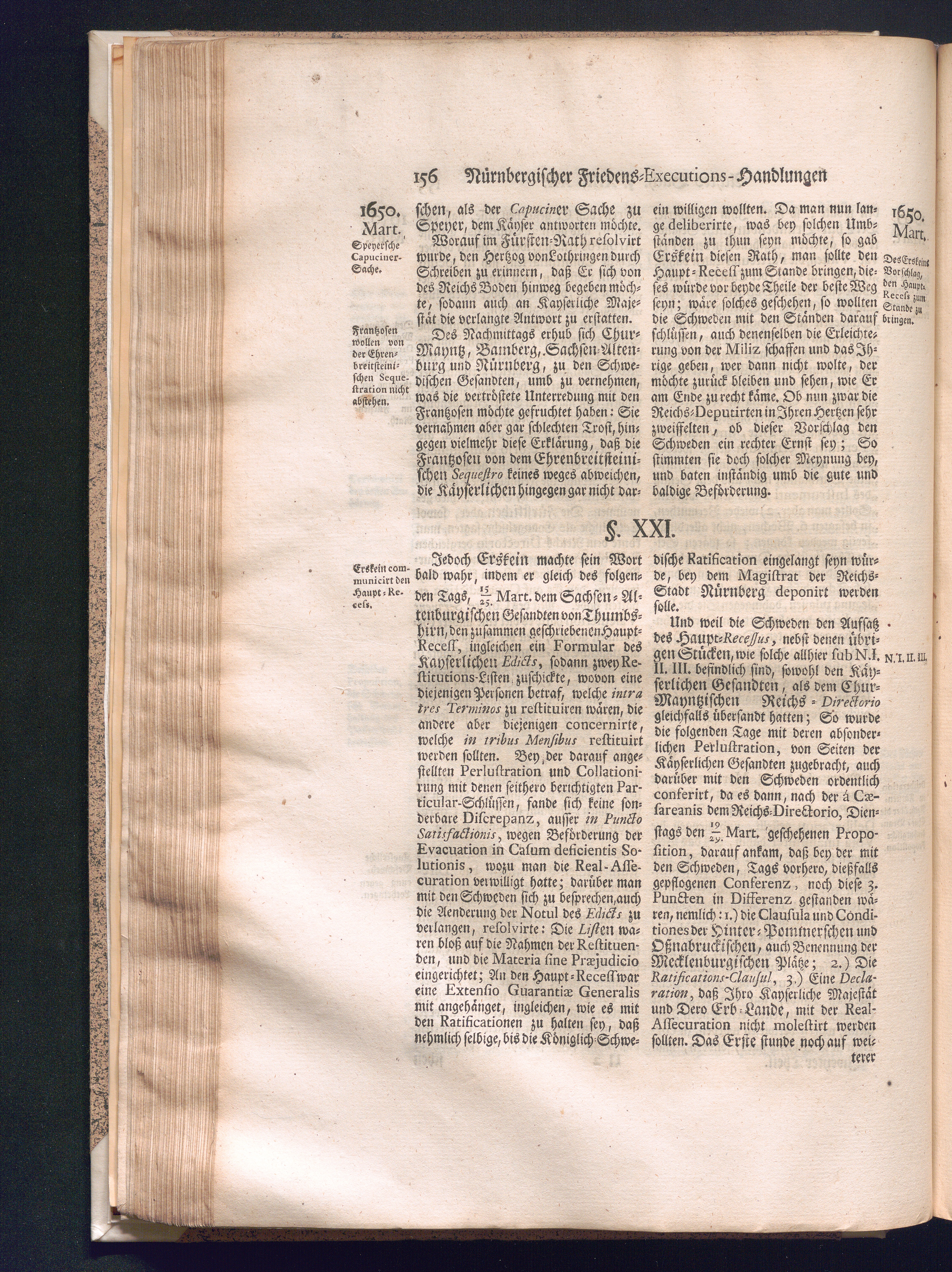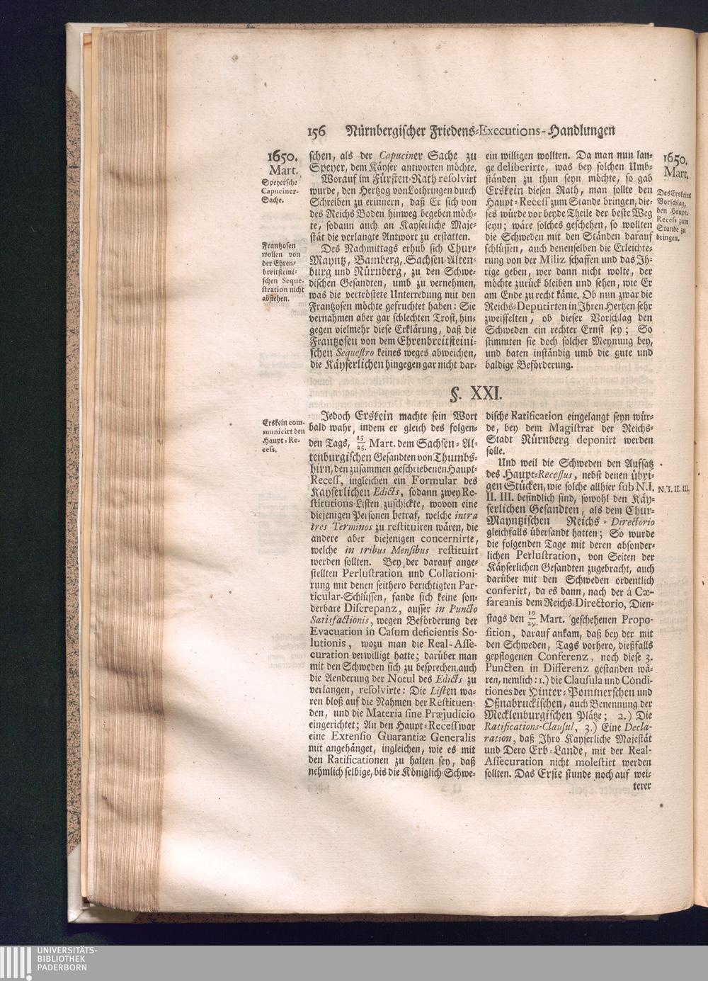 Zweyter und letzter Theil (1737) Worinnen enthalten, wie und welchergestalt die würckliche Vollziehung des Westphälischen Friedens, sowohl in puncto Exauctorationis Militæ und Evacuationis Locorum, als auch und vornehmlich in dem hochwichtigen puncto Restitutionis ex Capite Amnestiæ & Gravaminum, biß zum völligen Schluß des Congressus, Anno 1651, geschehen ist, in einer ausführlichen Historischen Erzehlung, mit beygefügten authentischen Urkunden, auch einem vollständigen Register