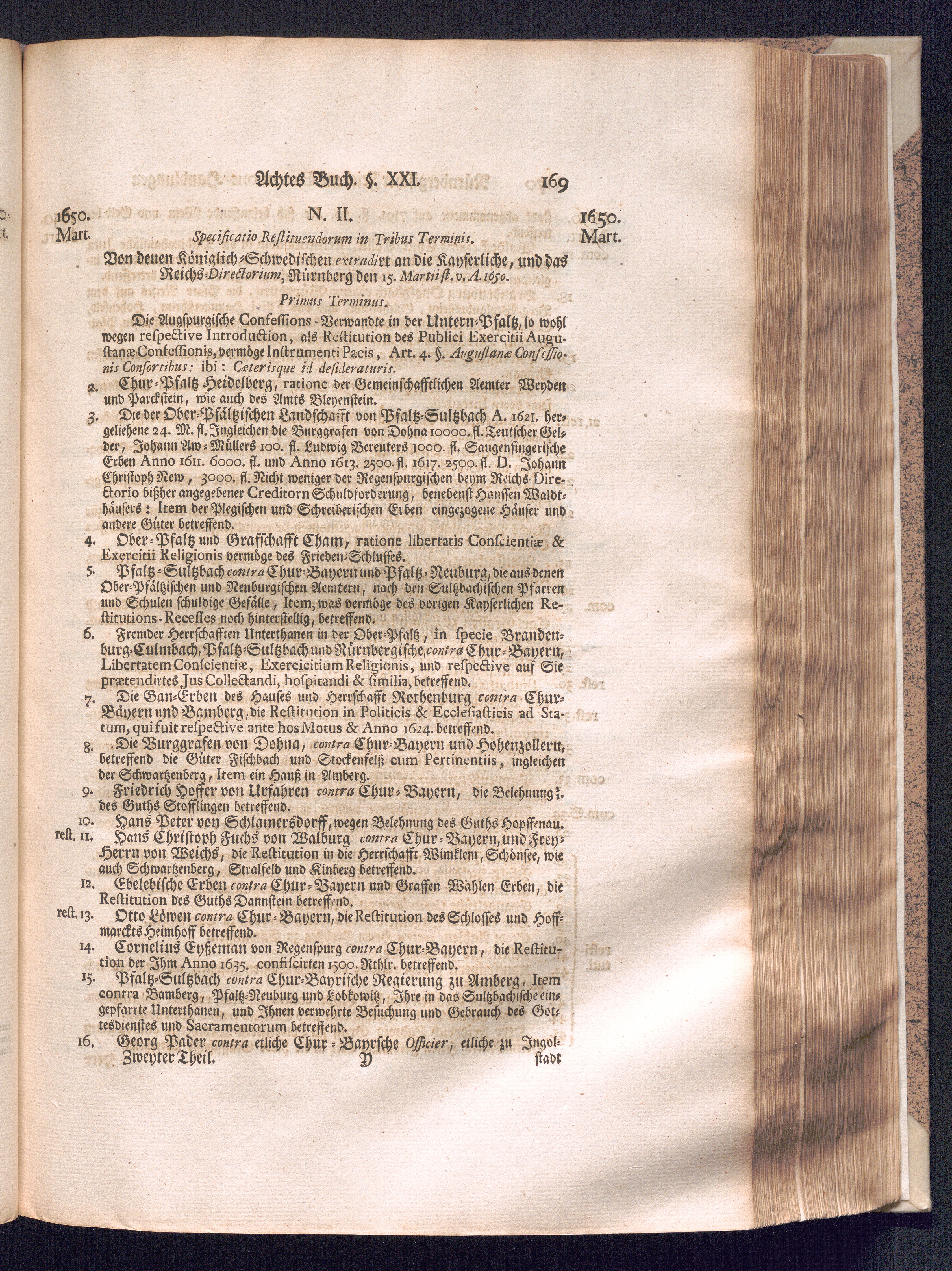 Zweyter und letzter Theil (1737) Worinnen enthalten, wie und welchergestalt die würckliche Vollziehung des Westphälischen Friedens, sowohl in puncto Exauctorationis Militæ und Evacuationis Locorum, als auch und vornehmlich in dem hochwichtigen puncto Restitutionis ex Capite Amnestiæ & Gravaminum, biß zum völligen Schluß des Congressus, Anno 1651, geschehen ist, in einer ausführlichen Historischen Erzehlung, mit beygefügten authentischen Urkunden, auch einem vollständigen Register
