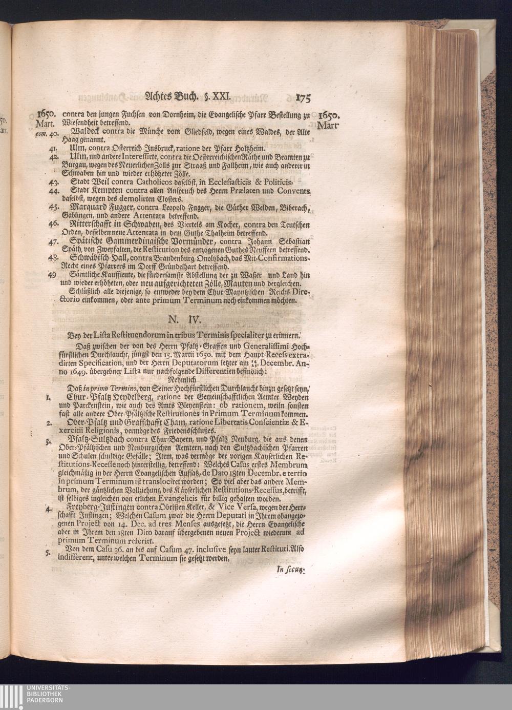 Zweyter und letzter Theil (1737) Worinnen enthalten, wie und welchergestalt die würckliche Vollziehung des Westphälischen Friedens, sowohl in puncto Exauctorationis Militæ und Evacuationis Locorum, als auch und vornehmlich in dem hochwichtigen puncto Restitutionis ex Capite Amnestiæ & Gravaminum, biß zum völligen Schluß des Congressus, Anno 1651, geschehen ist, in einer ausführlichen Historischen Erzehlung, mit beygefügten authentischen Urkunden, auch einem vollständigen Register