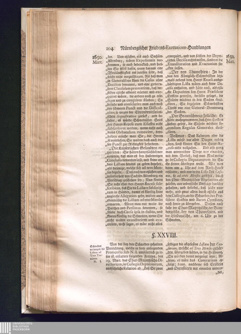 Zweyter und letzter Theil (1737) Worinnen enthalten, wie und welchergestalt die würckliche Vollziehung des Westphälischen Friedens, sowohl in puncto Exauctorationis Militæ und Evacuationis Locorum, als auch und vornehmlich in dem hochwichtigen puncto Restitutionis ex Capite Amnestiæ & Gravaminum, biß zum völligen Schluß des Congressus, Anno 1651, geschehen ist, in einer ausführlichen Historischen Erzehlung, mit beygefügten authentischen Urkunden, auch einem vollständigen Register