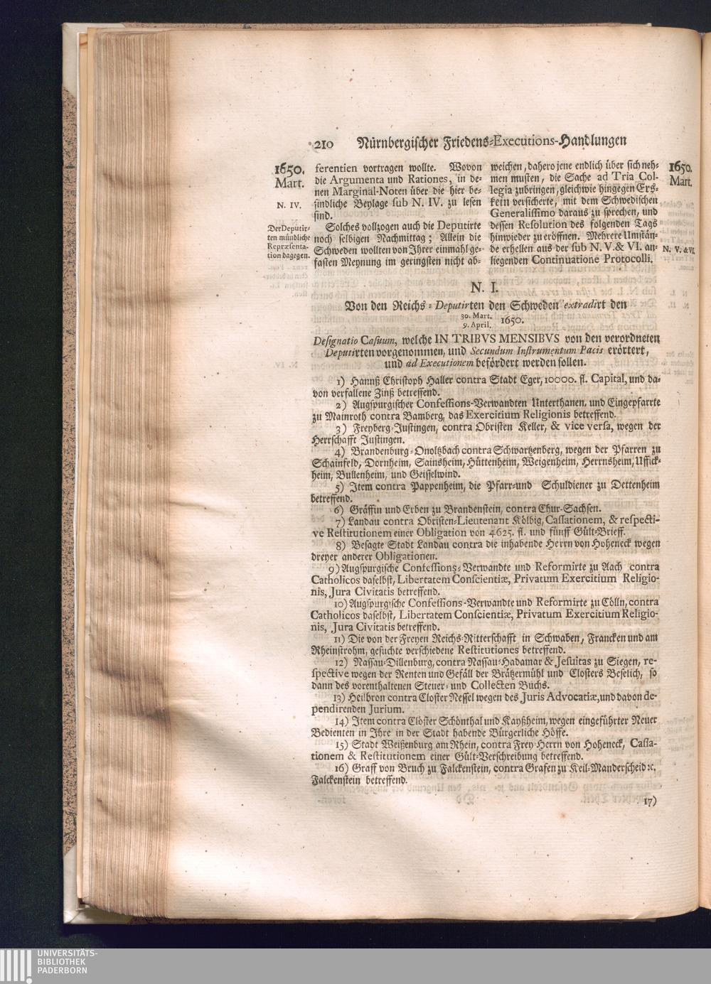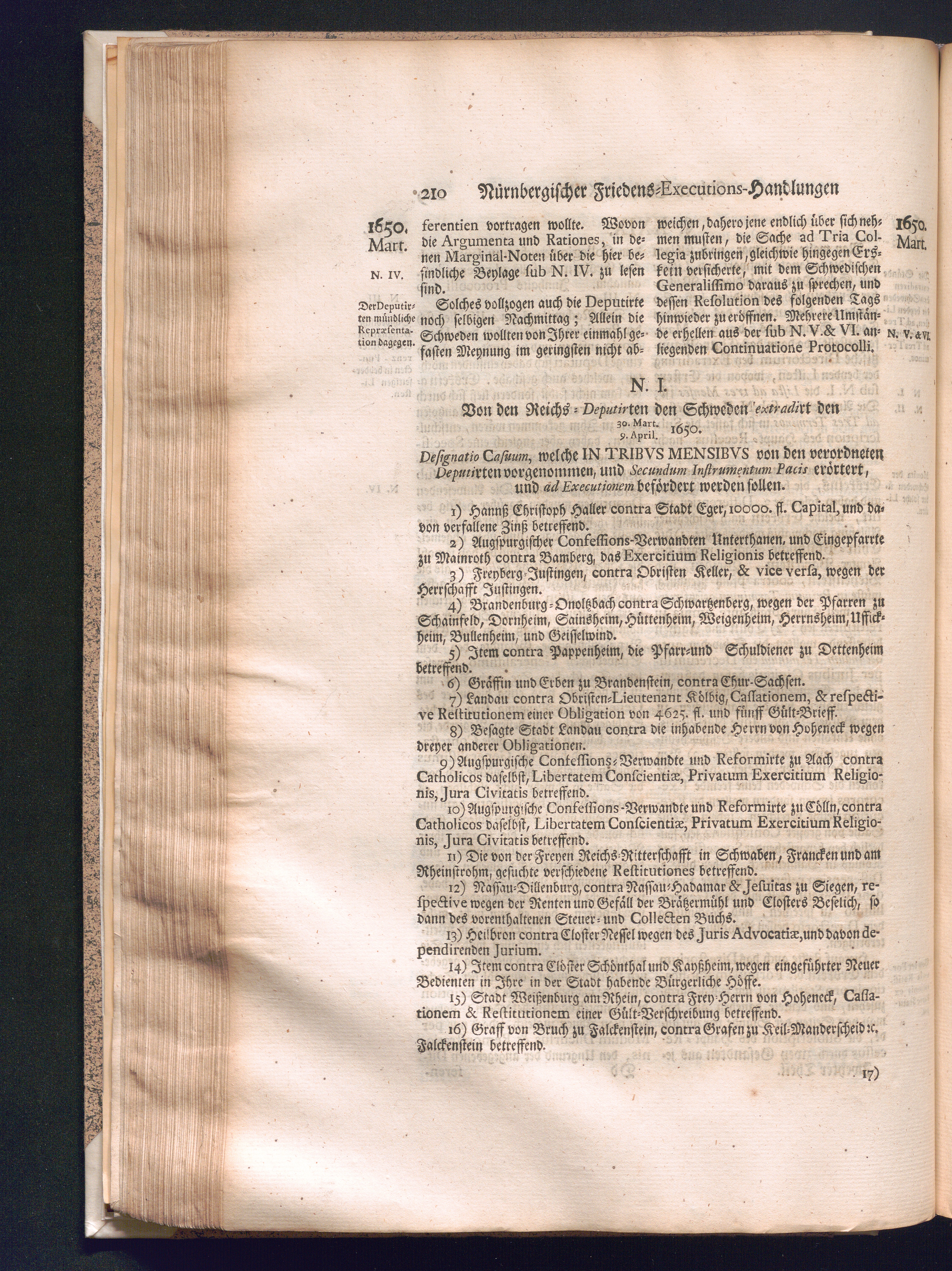 Zweyter und letzter Theil (1737) Worinnen enthalten, wie und welchergestalt die würckliche Vollziehung des Westphälischen Friedens, sowohl in puncto Exauctorationis Militæ und Evacuationis Locorum, als auch und vornehmlich in dem hochwichtigen puncto Restitutionis ex Capite Amnestiæ & Gravaminum, biß zum völligen Schluß des Congressus, Anno 1651, geschehen ist, in einer ausführlichen Historischen Erzehlung, mit beygefügten authentischen Urkunden, auch einem vollständigen Register