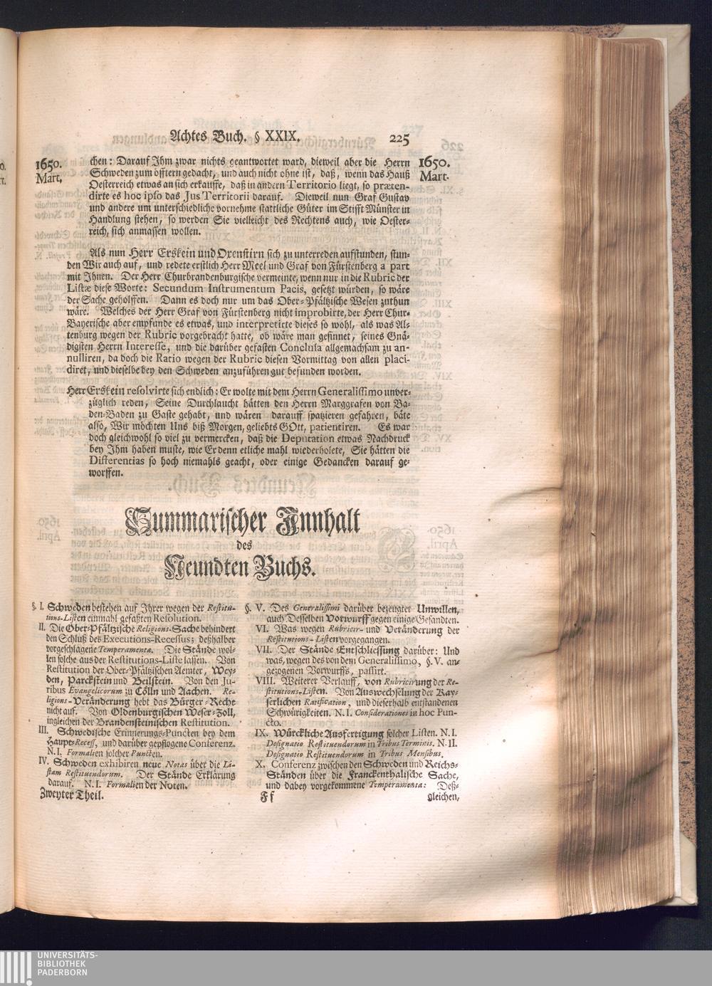 Zweyter und letzter Theil (1737) Worinnen enthalten, wie und welchergestalt die würckliche Vollziehung des Westphälischen Friedens, sowohl in puncto Exauctorationis Militæ und Evacuationis Locorum, als auch und vornehmlich in dem hochwichtigen puncto Restitutionis ex Capite Amnestiæ & Gravaminum, biß zum völligen Schluß des Congressus, Anno 1651, geschehen ist, in einer ausführlichen Historischen Erzehlung, mit beygefügten authentischen Urkunden, auch einem vollständigen Register