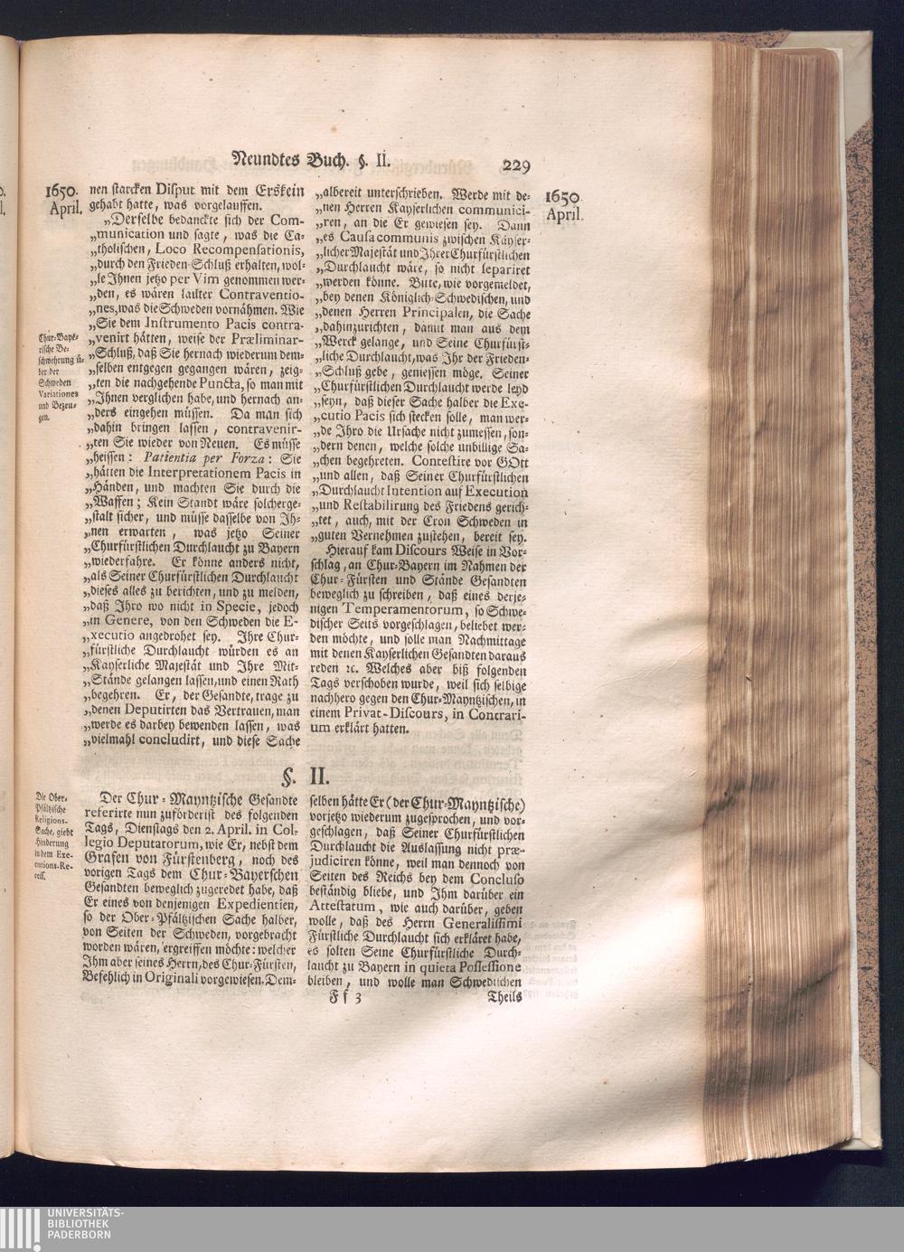 Zweyter und letzter Theil (1737) Worinnen enthalten, wie und welchergestalt die würckliche Vollziehung des Westphälischen Friedens, sowohl in puncto Exauctorationis Militæ und Evacuationis Locorum, als auch und vornehmlich in dem hochwichtigen puncto Restitutionis ex Capite Amnestiæ & Gravaminum, biß zum völligen Schluß des Congressus, Anno 1651, geschehen ist, in einer ausführlichen Historischen Erzehlung, mit beygefügten authentischen Urkunden, auch einem vollständigen Register