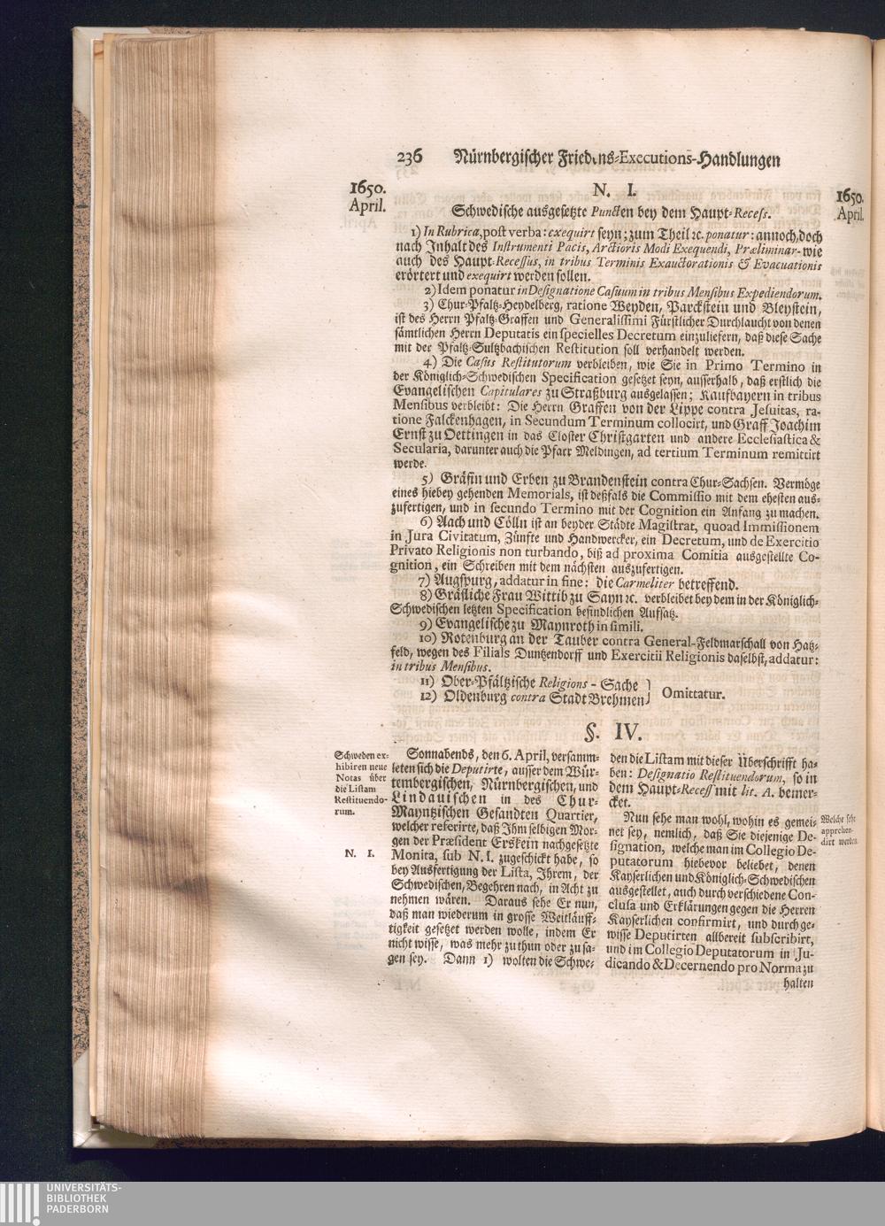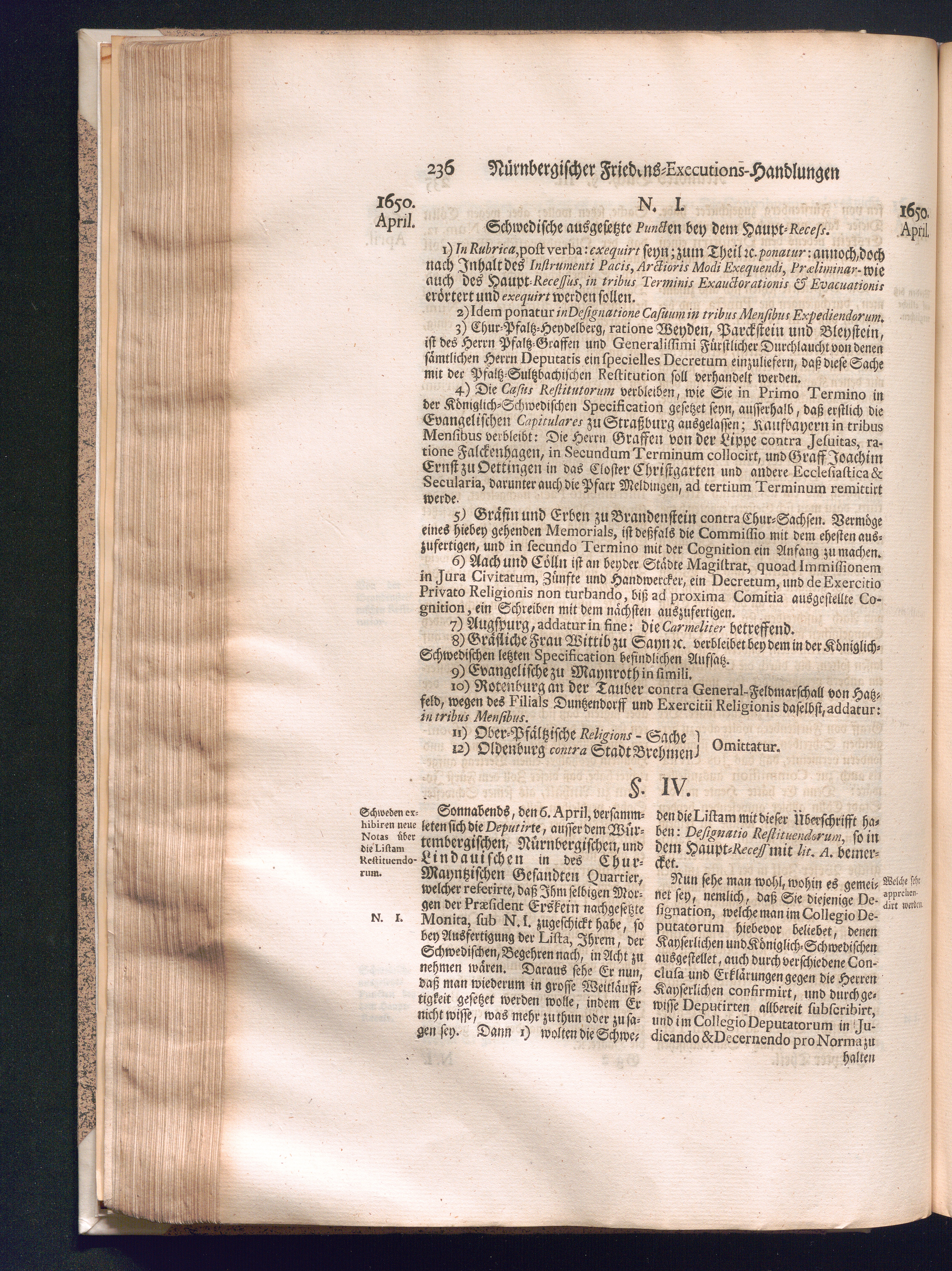 Zweyter und letzter Theil (1737) Worinnen enthalten, wie und welchergestalt die würckliche Vollziehung des Westphälischen Friedens, sowohl in puncto Exauctorationis Militæ und Evacuationis Locorum, als auch und vornehmlich in dem hochwichtigen puncto Restitutionis ex Capite Amnestiæ & Gravaminum, biß zum völligen Schluß des Congressus, Anno 1651, geschehen ist, in einer ausführlichen Historischen Erzehlung, mit beygefügten authentischen Urkunden, auch einem vollständigen Register