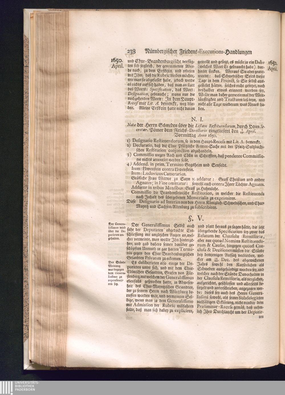 Zweyter und letzter Theil (1737) Worinnen enthalten, wie und welchergestalt die würckliche Vollziehung des Westphälischen Friedens, sowohl in puncto Exauctorationis Militæ und Evacuationis Locorum, als auch und vornehmlich in dem hochwichtigen puncto Restitutionis ex Capite Amnestiæ & Gravaminum, biß zum völligen Schluß des Congressus, Anno 1651, geschehen ist, in einer ausführlichen Historischen Erzehlung, mit beygefügten authentischen Urkunden, auch einem vollständigen Register